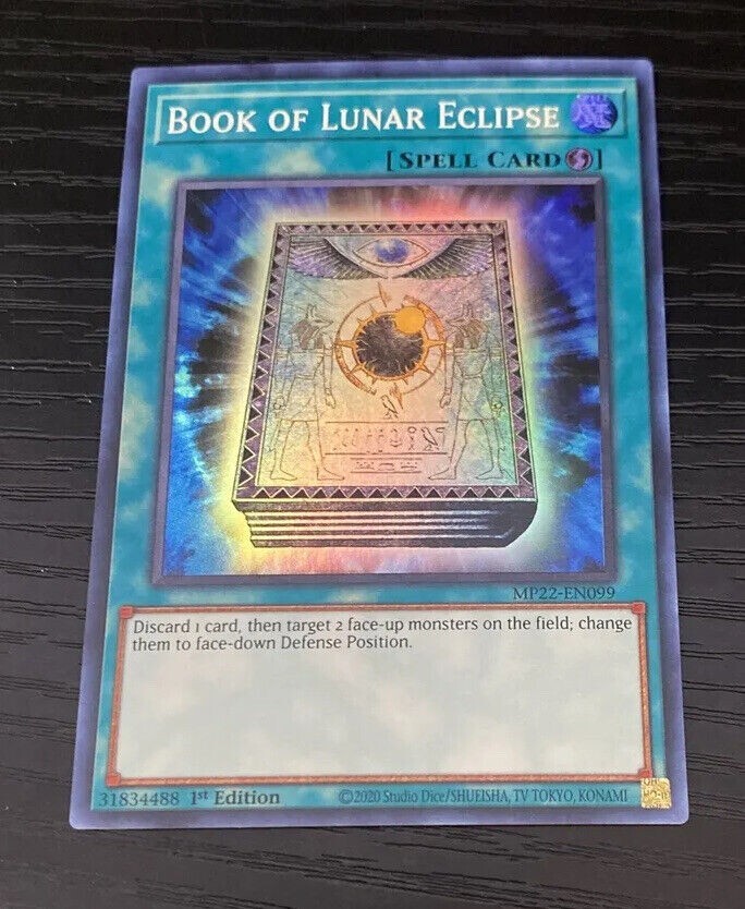 You are bidding on : 1 x Yu-Gi-Oh 2022 Mega-Tin: Pharaoh's Gods BOOK OF LUNAR ECLIPSE (Super Rare - 1st Edition) MP22-EN099 " Each card has gone straight from the pack to storage, and will go straight from storage to you. While each card is unplayed and could be considered 'pack fresh', due to current manufacturing standards and the type of packaging used, there are minor factory defects present on each card, primarily in the form of mild wear on back corners. " "Most MP22 tin singles are Near Mint Minus to Near Mint" All cards are in Near Mint condition unless specified Pictures are stock pictures ONLY it is not of the actual card How we identify the condition of the card: Near Mint: Most of the time cards in this condition are pack fresh but, the card may have minor flaws that are not visible with a quick inspection, small white dots or scratches that you have to closely examine the card to see. Excellent: Overall the card looks near mint but may have minor scratches, slightly worn edges that are visible but they do not interfere with the way the card looks. Lightly Played: Similar to a card in excellent condition except there is more whitening around the edges and the corners are a little more worn or slight bends or creases that are visible. There might be some slight whitening on the back or front of the card. Imperfections will be visible with a quick inspection. When the card is sleeved the imperfections will not be noticeable and the card will look just like the rest of your cards Played: There is a large amount of whitening around the edges and the corners have a good amount of damage, many scratches, bends and/or creases on the card. When the card is sleeved it can still be played Shipping and Handling : Canada Shipping is $1.50 CAD Tracking is offered for $13 CAD BUT tracking is required on any purchases that are over $50 CAD Please contact us for combined shipping if interested in purchasing multiple cards before paying USA Shipping is $1.99 CAD Regular Mail for all orders under $19.99 Shipping is $7.99 CAD with USPS tracking for all orders $19.99 and over Please contact us for combined shipping if interested in purchasing multiple cards before paying INTERNATIONAL Shipping is $4.99 CAD with regular mail Tracking is offered for $29.99 CAD BUT tracking is required for purchases over $50 CAD Please contact us for combined shipping if interested in purchasing multiple cards before you pay Combined shipping: We offer combined shipping: each and every additional item after the first one is only $0.25 (25 cents). To obtain combined shipping fees, please use the shopping cart or ask for the combined shipping invoice BEFORE you pay. If you pay item-by-item, right away after the purchase, we will not be able to offer you combined shipping anymore. Handling Your order will be shipped 1-3 business days after payment has been received *“Business days” are normal weekdays. Saturdays, Sundays, and major holidays do not count as business days. Cards purchased are packaged and shipped in a sleeve, toploaders, a team bag and an envelope to ensure protection of cards Payment : Payments should be made within 5 days after purchase Epic Cards and Games Any questions feel free to email us and allow 1 day for a response. Thanks for looking! Sales Tax (Canada Only) : Purchases made by Canadian residents are subject to applicable GST/HST, depending on your province/territory. (If you do not agree to this, please do not bid. We have a registered business in Canada and are required by law to charge taxes to anything shipped within the country.) Thank you for shopping with Epic Cards and Games