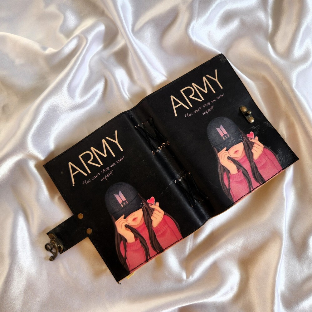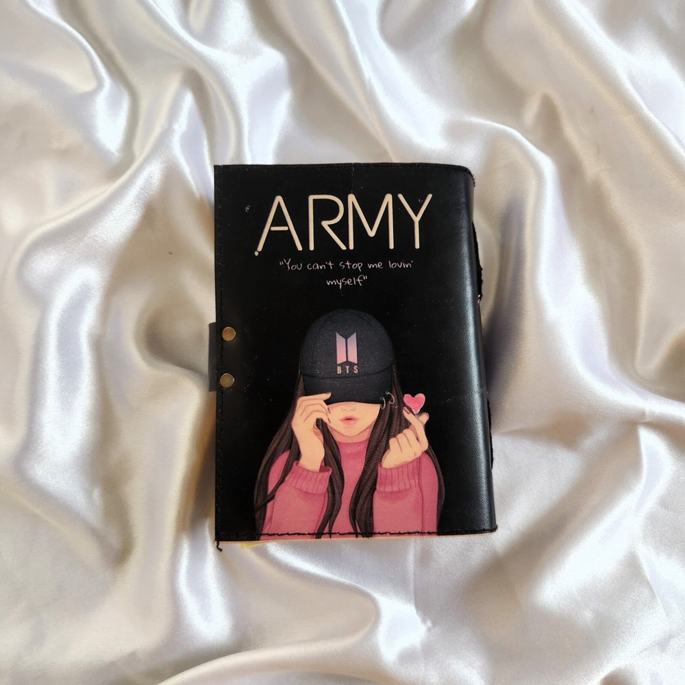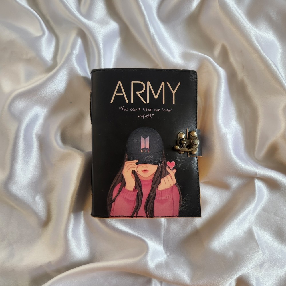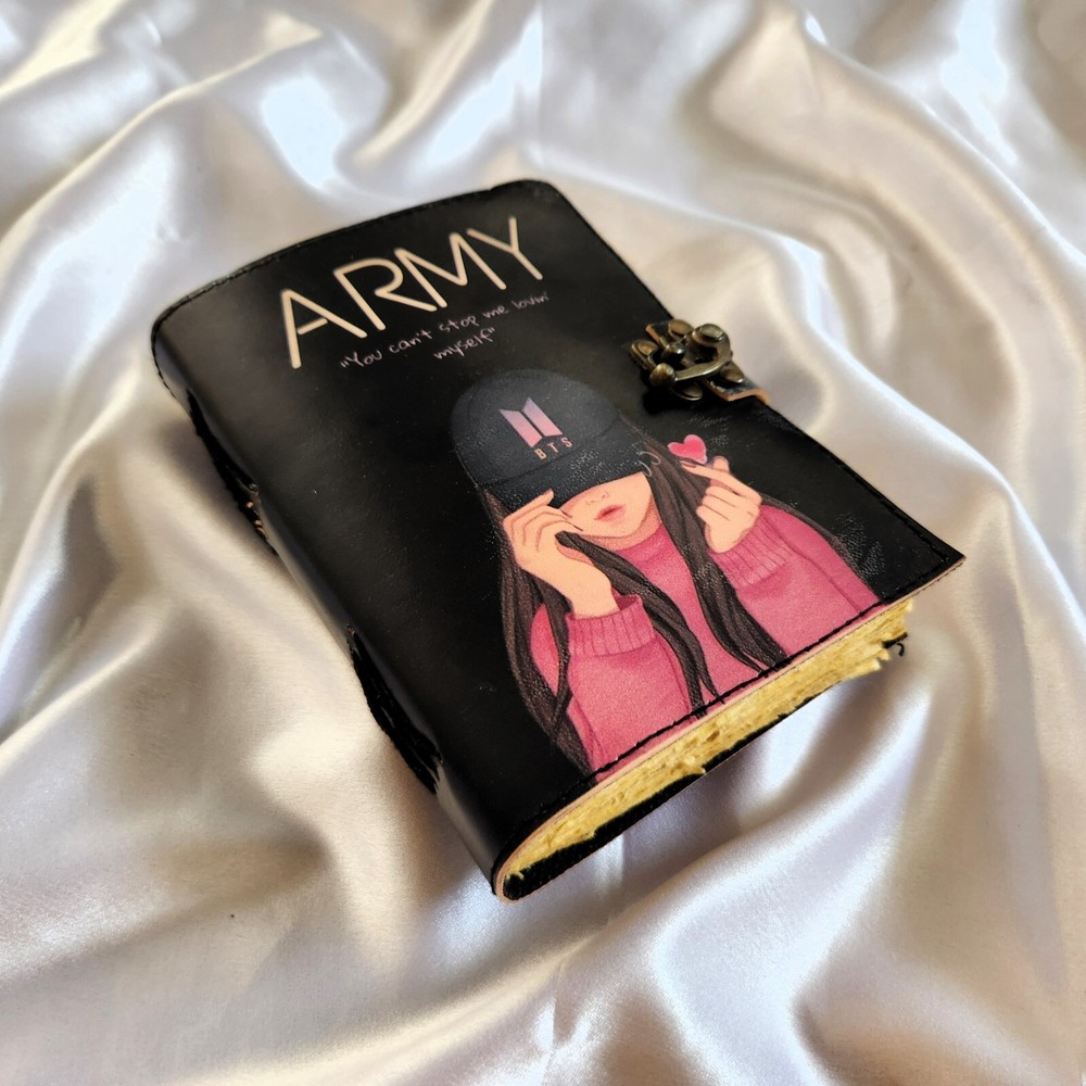 This item sounds like a beautifully crafted journal with a Bts theme, ideal for fanes of the K-pop group. it has a leather cover, 200 deckle- edged page & is described as multifunctional—it can be used as a sketchbook, dairy, dream journal, or travel dairy. its dimensions are 7x5 inches, 9x6 inches making it a portable & stylish gift, especially for someone who lovers BTS. The "Love Yourself" theme ties it to one of BTS's popular albums, adding a special touch of fans.