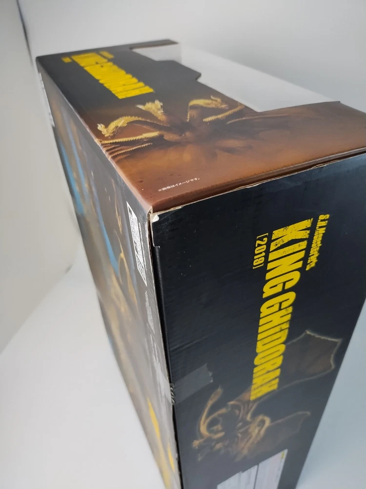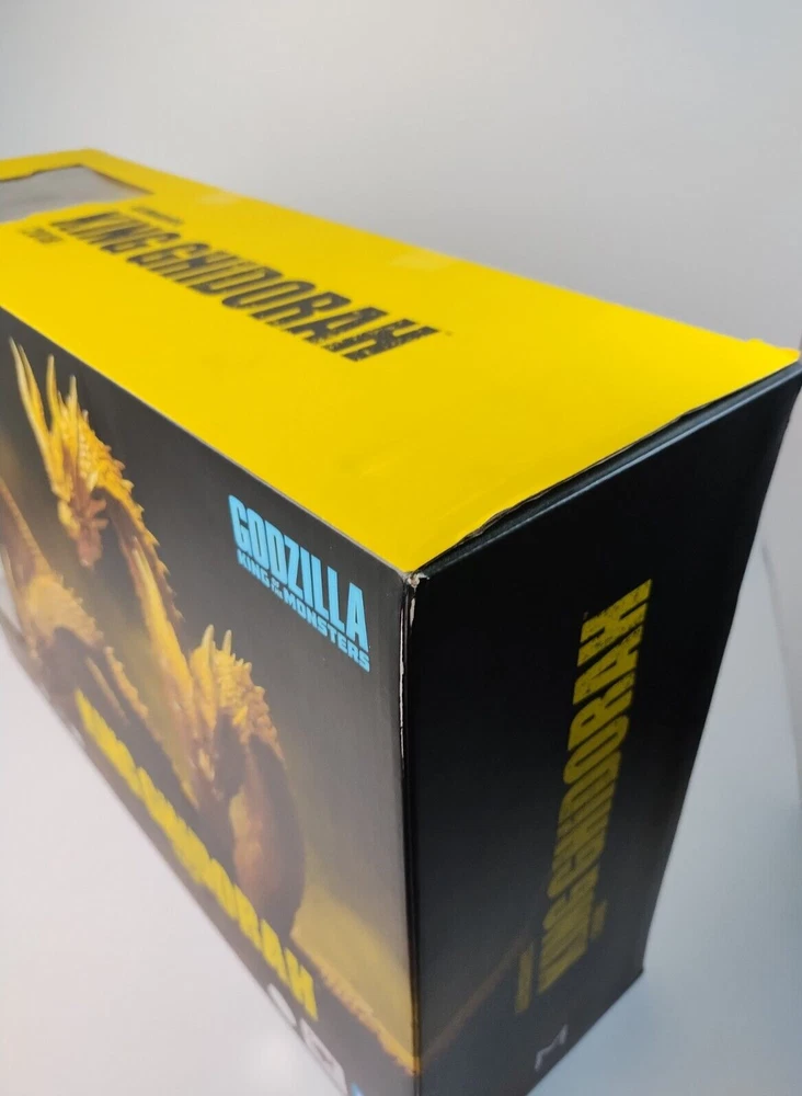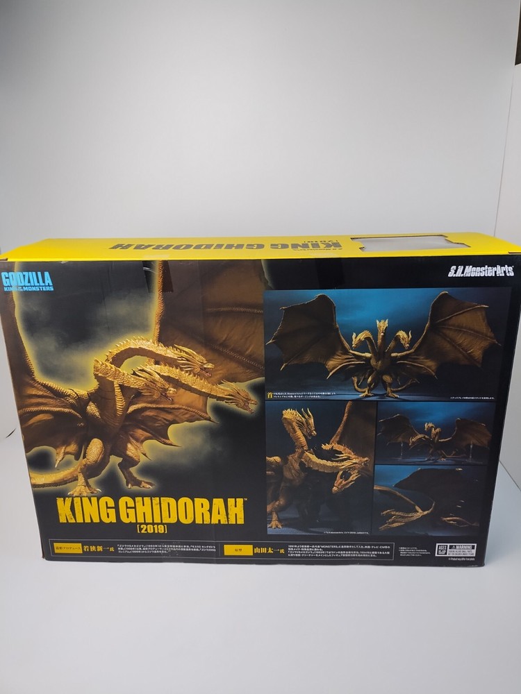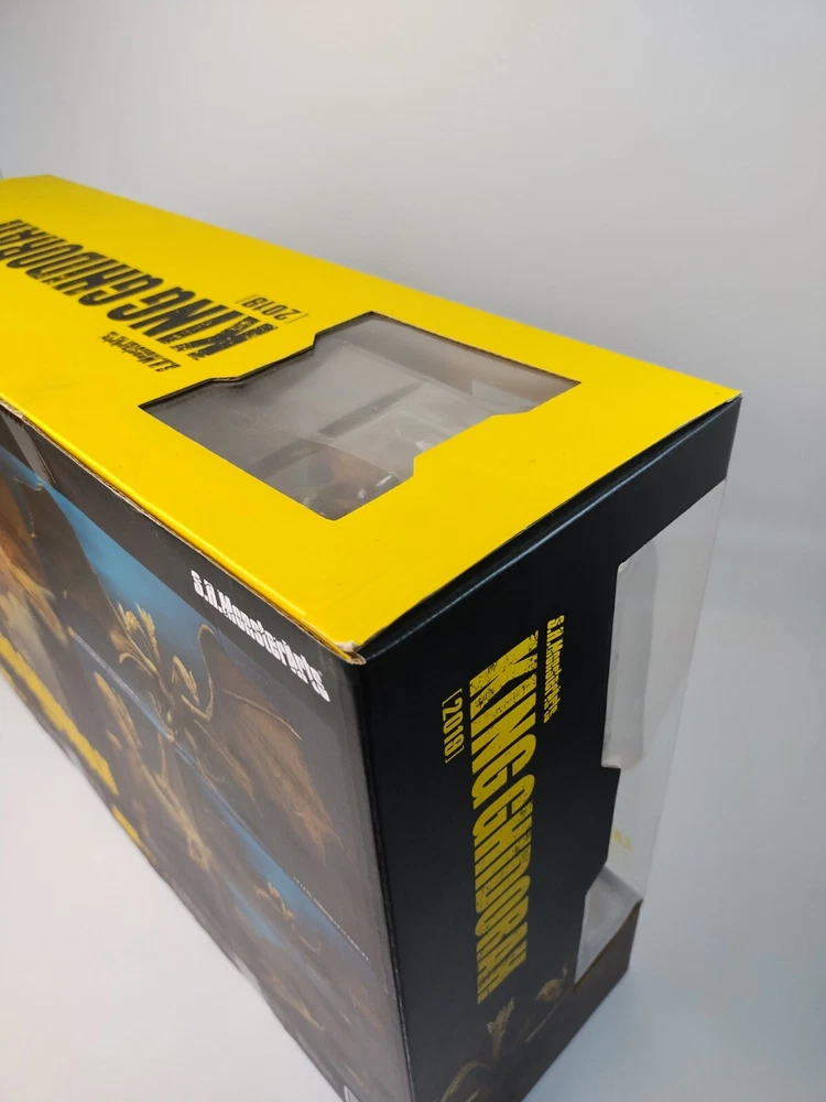 Bandai S.H. MonsterArts: Godzilla King Of The Monsters: King Ghidorah 2019 Original Release Box has shelf, and some corner wear. See photos for condition. Will ship via USPS Ground Advantage. Priority shipping available. Add to cart for combined shipping with other items from my store. There is a 30 days return policy. Feel free to contact me if there is an issue with the item.