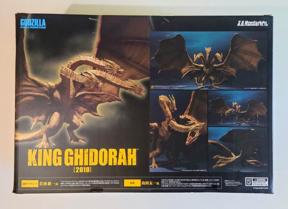 Name: S.H. MonsterArts King Ghidorah from the 2019 Godzilla Movie Details Condition: Figure is new and has never been removed from the box. Box Condition: Box is in good condition with no major issues. Minor wear from storage. Shipping Price of shipping is based on size of item and weight. Due to the size of the box shipping can vary.