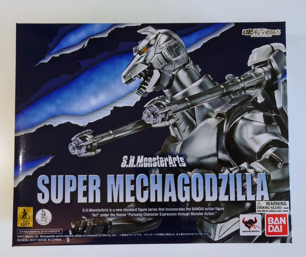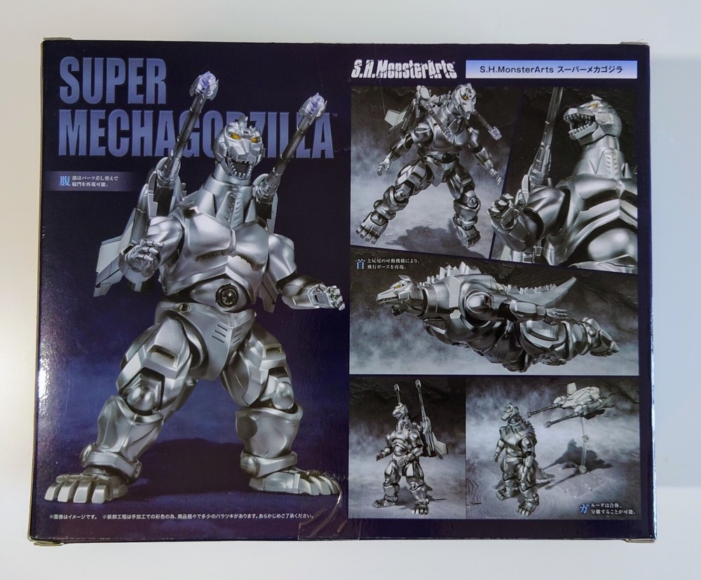 Name: S.H. MonsterArts Super Mechagodzilla. The box has never been opened. Details Condition: Figure is in great condition and has never been removed from the package. Box Condition: Package is in good condition with no major issues. Minor wear from storage.
