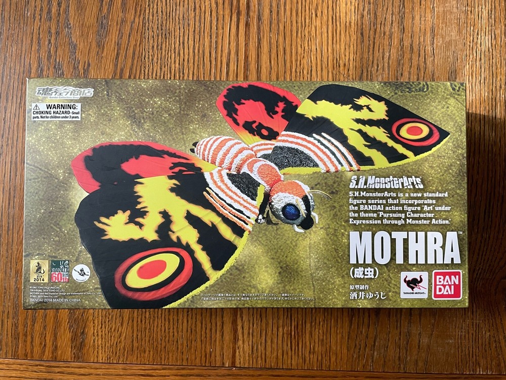 Bandai S.H. Monsterarts Mothra (Adult) First Edition. Comes from a non-smoking home Slight marks on top of box from tape