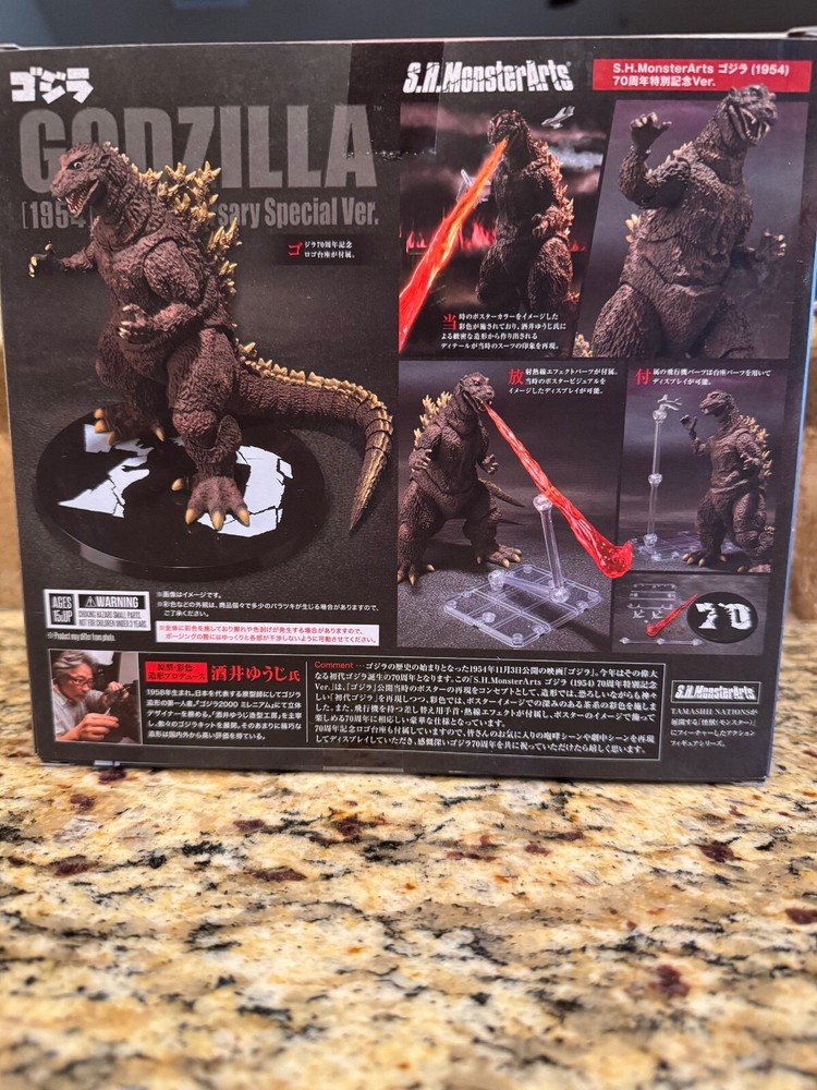 This is a Brand new Bandai S.H.MonsterArts 1954 GODZILLA 70th Anniversary Special Action Figure. The figure is based on the classic 1954 Godzilla movie and is part of the S.H.MonsterArts line. It is recommended for ages 15 and up and is a must-have for any Godzilla fan or collector. The figure is highly detailed and features multiple points of articulation for dynamic posing and display. Please See Pictures. Any Questions Just Ask I only ship to continental United States.