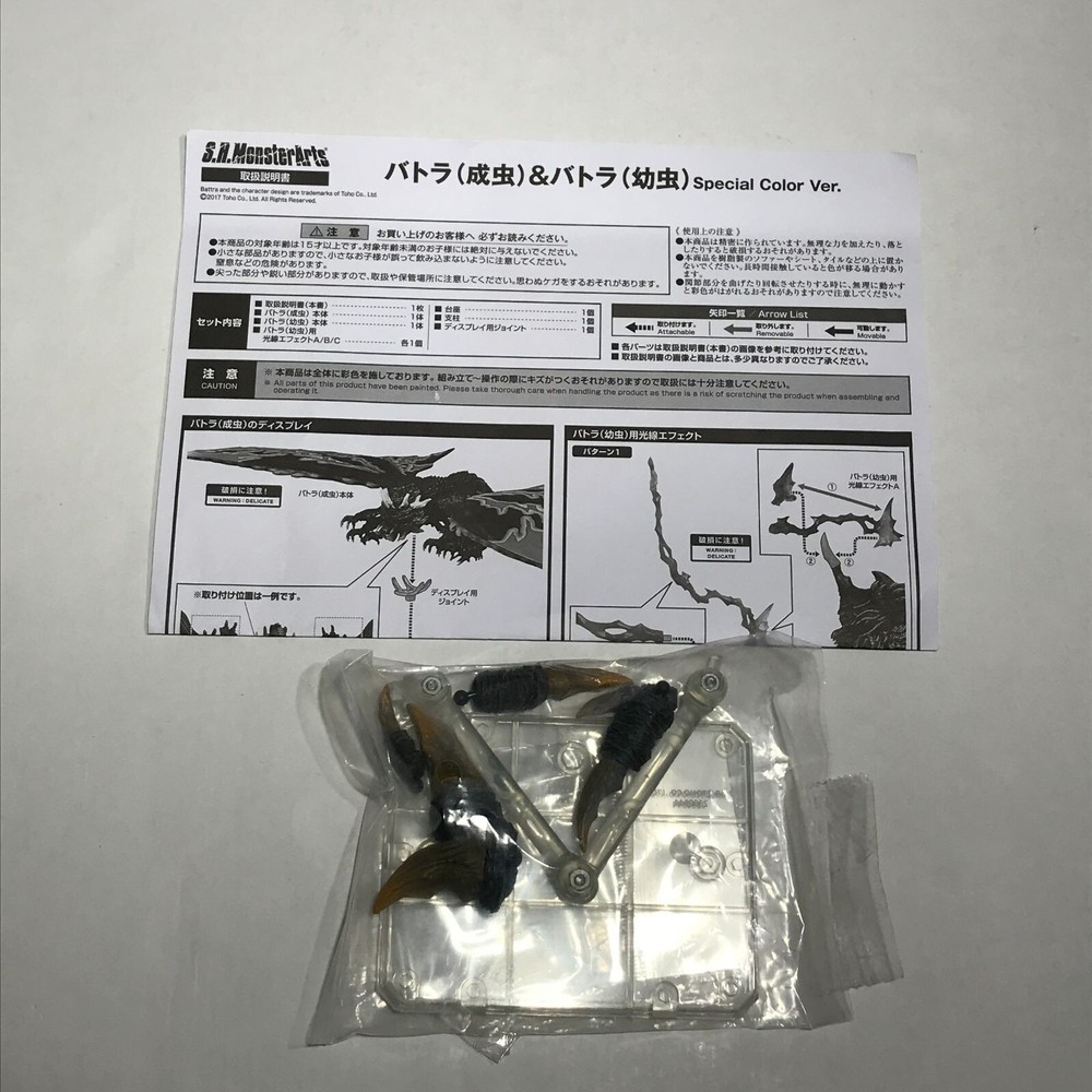 Bandai S.H.MonsterArts Figure Battra Adult & Larva Special Color Version Description Item Condition : Used Very Good! S.H.MonsterArts BATTRA Special Color Ver. Battra (Adult) & Battra (Larva) Condition: The box has significant damage, including tears, peeling, and scratches. One effect part is missing. The main figures themselves do not show any noticeable damage. Please note that any bonuses or items not shown in the images are not included. Shipping Handling Time: 5 business days We will ship your item on week day from Japan. Standard Shipping with tracking number by FedEX or DHL or Japan post. We will ships within 5 business days after receiving cleared payment. ※Business days are not include Saturday, Sunday and National holidays. Package We pack items carefully and send them from Japan prompthy. You should have no concern about shipment. International Buyers - Please Note: Import duties, taxes, and charges are not included in the item price or shipping cost. These charges are the buyer's responsibility. Please check with your country's customs office to determine what these additional costs will be prior to bidding or buying. Thank you for your understanding. Additionally: Please note that customs duties and taxes may apply depending on the destination country. We generally ship under DDU (Delivered Duty Unpaid) terms, meaning any customs duties, taxes, or import fees will be the responsibility of the buyer and collected by the local customs authorities. We kindly recommend checking the latest import regulations of your country before making a purchase. As per eBay policy, import duties are the buyer?s obligation. Thank you for your understanding.