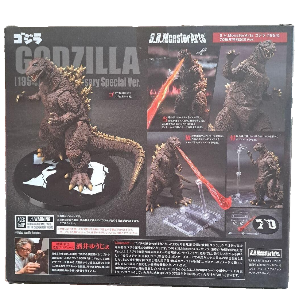 Bandai S.H.MonsterArts GODZILLA (1954) 70th Anniversary Special Ver New Description Brand New Shipping Expedited Shipping(FedEx). Free Shipping International Buyers - Please Note: Import duties, taxes, and charges are not included in the item price or shipping cost. These charges are the buyer's responsibility. Please check with your country's customs office to determine what these additional costs will be prior to bidding or buying. Thank you for your understanding.
