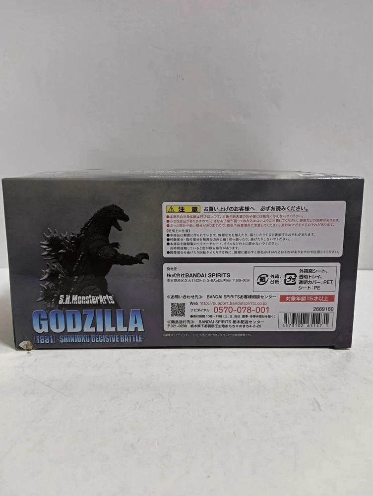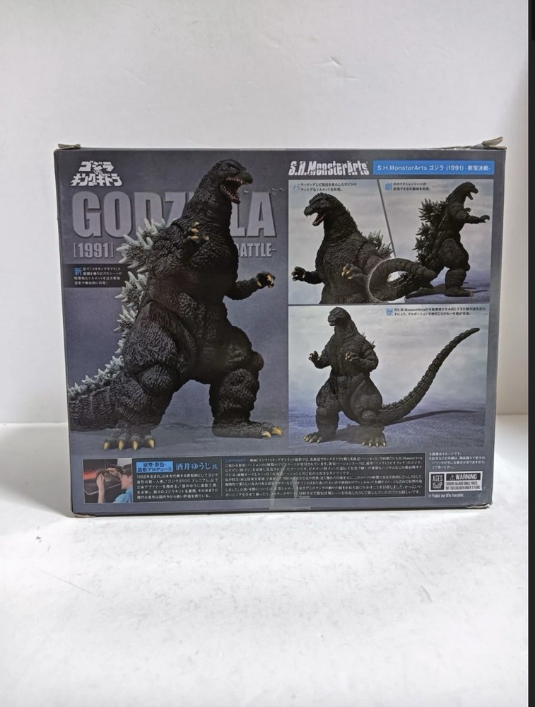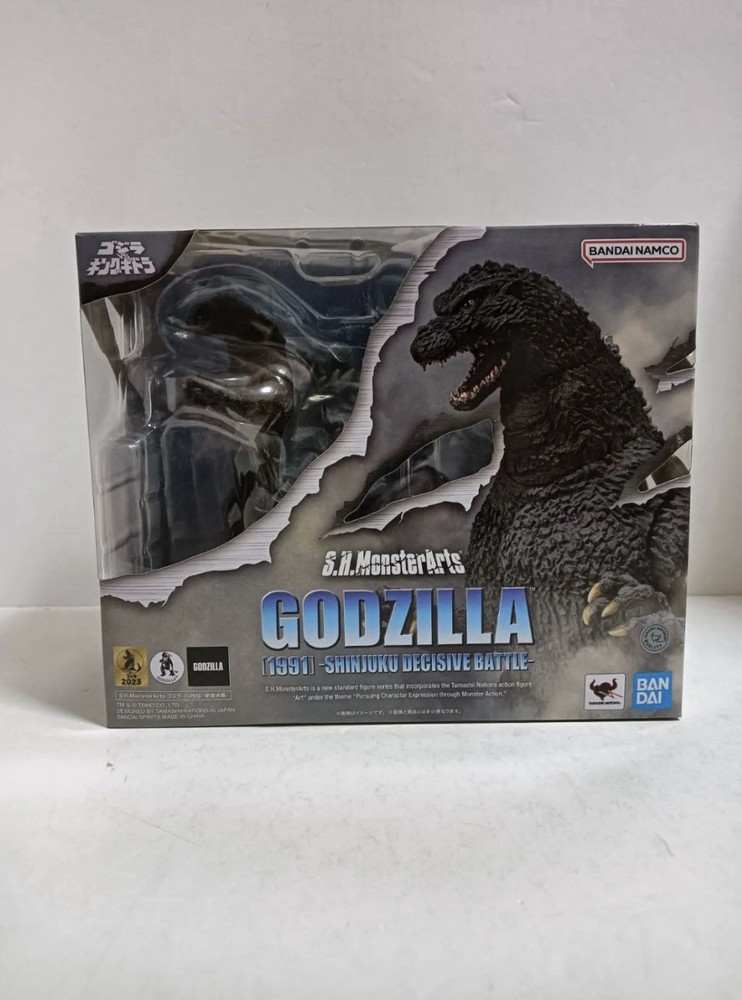[Product name S.H.MonsterArts Godzilla 1991 Shinjuku Decisive Battle Ver. Product Condition New and unopened. The outer box may have some scuffs, but it is in good condition and suitable for collection. Product Description From the movie "Godzilla vs. King Ghidorah" (1991) comes the S.H.MonsterArts series of Godzilla from the Shinjuku battle scene. The suit is a masterpiece that thoroughly recreates the modeling of the suit in the movie, with attention to detail down to the details of the body surface, the shape of the claws, and even the modeling of the dorsal fin. The figure has many movable gimmicks, allowing for dynamic poses. Effect parts and optional parts are also included.