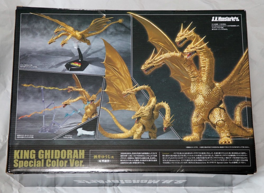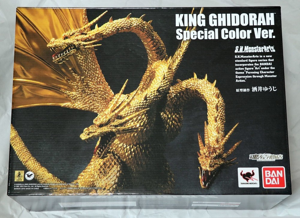 Bandai S.H.MonsterArts King Ghidorah Special Color w/box from Japan Description With Box. Paint is uneven. Tail easily dislodged. Shipping Thank you for visiting our store.To better serve our customers, we offer express shipping by Fedex, EMS, and DHL to ensure prompt delivery of your shipments. We will select the carrier based on the item's weight, dimensions, and country restrictions. If your country is not included in the list, please contact us so we can send you a quote. Standard Shipping (Japan Post , FedEx , DHL)The package will arrive 3-14 days after shipment. Returns You can return the item within 30 days from the day you received the item. If there is a problem with the product you received, please contact our customer service. International Buyers - Please Note: Import duties, taxes, and charges are not included in the item price or shipping cost. These charges are the buyer's responsibility. Please check with your country's customs office to determine what these additional costs will be prior to< bidding or buying. If there is a remote charge for your address, we will charge you for additional shipping. Thank you for your understanding.
