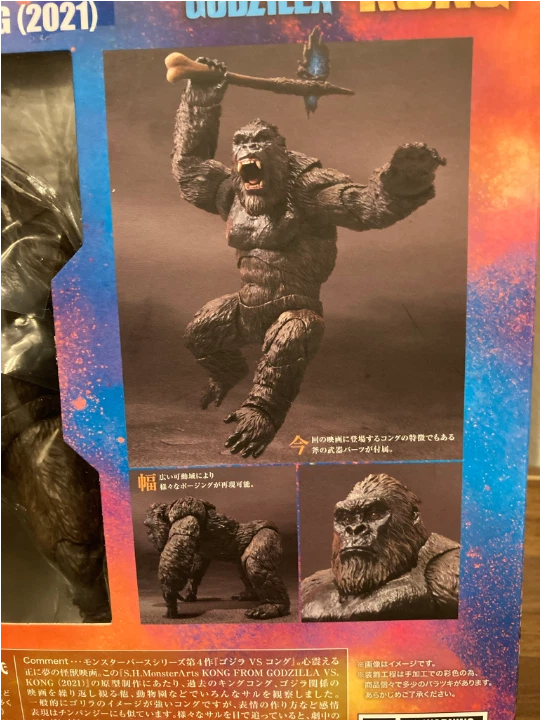 S.H.MonsterArts KONG from Movie GODZILLA VS. KONG (2021) Description The figure was sculpted and colored by animal sculptor Shinzen Takeuchi, based on data from the movie. The sculpting began with the skeleton, and then muscles and hair were added to make the figure more realistic and closer to its appearance in the movie. The sculpt was created by Mitsuhiko Hosokawa, the creator of the S.H. MonsterArts articulation system, and the proportions of the figure have never been compromised. An axe weapon part is included. The wide range of motion allows for a variety of poses to be recreated. Payment I accept PayPal only. International Buyers - Please Note: Import duties, taxes, and charges are not included in the item price or shipping cost. These charges are the buyer's responsibility. Please check with your country's customs office to determine what these additional costs will be prior to bidding or buying. If the cancellation is due to the buyer, we will charge a PayPal fee. If there is a remote charge for your address, we will charge you for additional shipping. Thank you for your understanding.