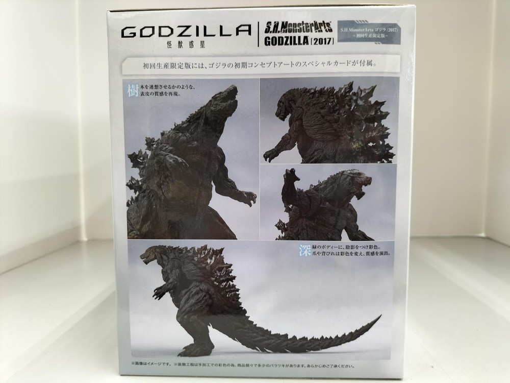 Item Title Bandai Spirits - S.H.Monsterarts Godzilla 2017 First Production Payment Supports managed payments Please pay within 5 days after auction is finished. About Us We are located in Japan. It's our pleasure to make you happy by proposing our recommend item. If you have any questions or request about items, please feel free to ask us. International Buyers - Please Note: -Import duties, taxes, and charges are not included in the item price or shipping charges. These charges are the buyer's responsibility. -Please check with your country's customs office to determine what these additional costs will be prior to bidding/buying. -These charges are normally collected by the delivering freight (shipping) company or when you pick the item up - do not confuse them for additional shipping charges. -We do not mark merchandise values below value or mark items as - gifts - The US and International government regulations prohibit such behavior. Thank you for your understanding.