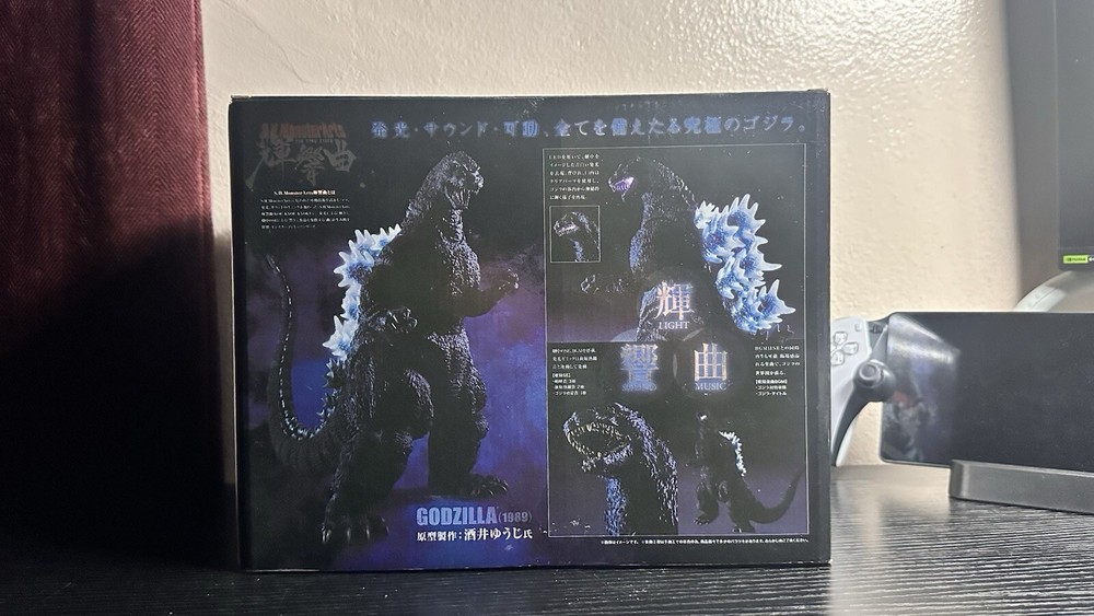 Experience the thrill of owning one of the most iconic monsters in cinematic history with the Bandai Tamashii Nations S.H. Monsterarts Kou Kyou Kyouku (Godzilla). This highly detailed figure captures the essence of the King of Monsters in stunning accuracy, featuring a dynamic pose that showcases his formidable presence. AND even lights up and plays his theme in a dorsal plate disguised as a button. Perfect for display or play, the S.H. Monsterarts line is known for its superior articulation, allowing for a wide range of motion and reenactment of classic scenes. This figure is also taller than the usual Monsterarts Godzilla, standing at 8.25 inches, making him even more imposing and premium. I also attached pictures of my own copy so you can see how sick this figure is.