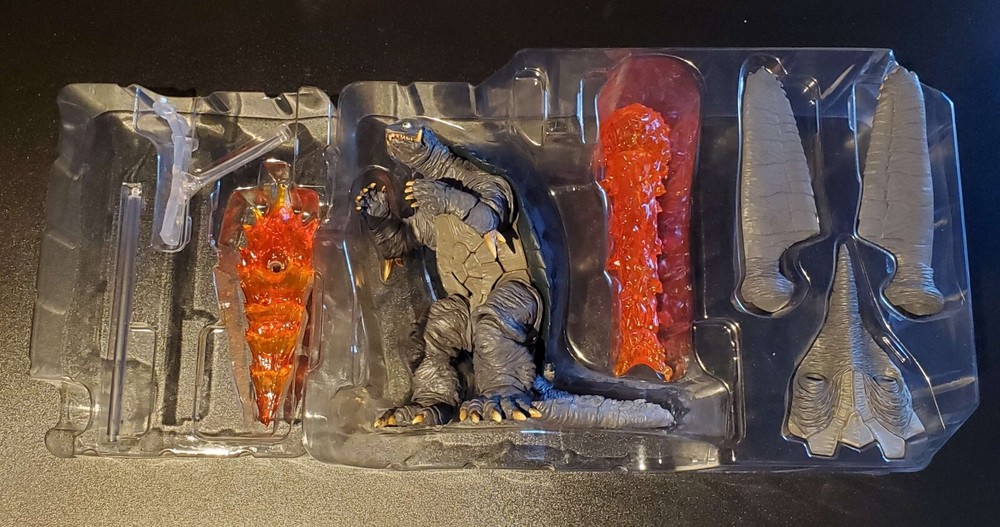 Displayed in a smoke-free home. Kept in a glass case with occasional dusting. Might be dusty. Box has edge wear. All contents are included. The stomach panels that open up are a bit loose on the model, and can fall off easily. Not an issue if just displaying though.
