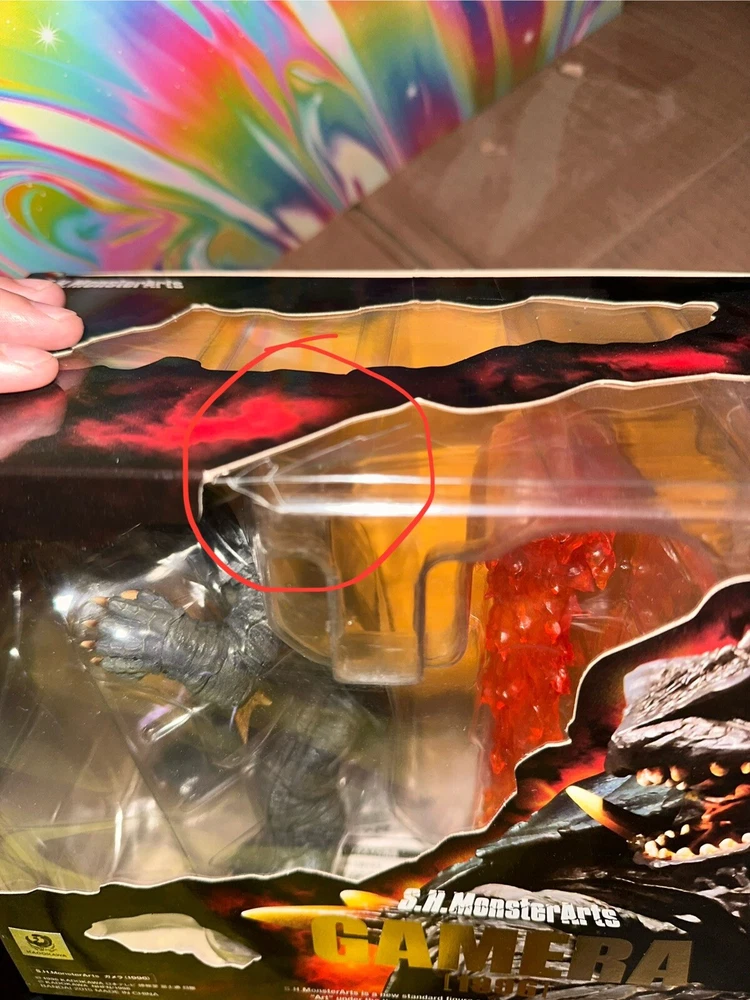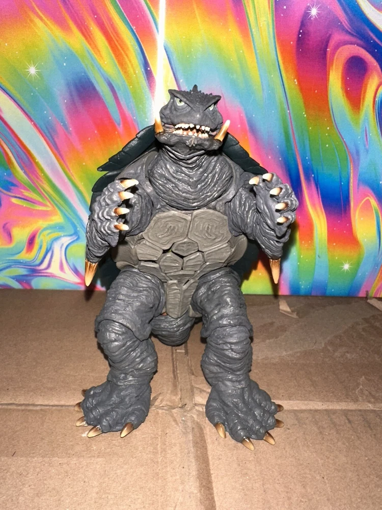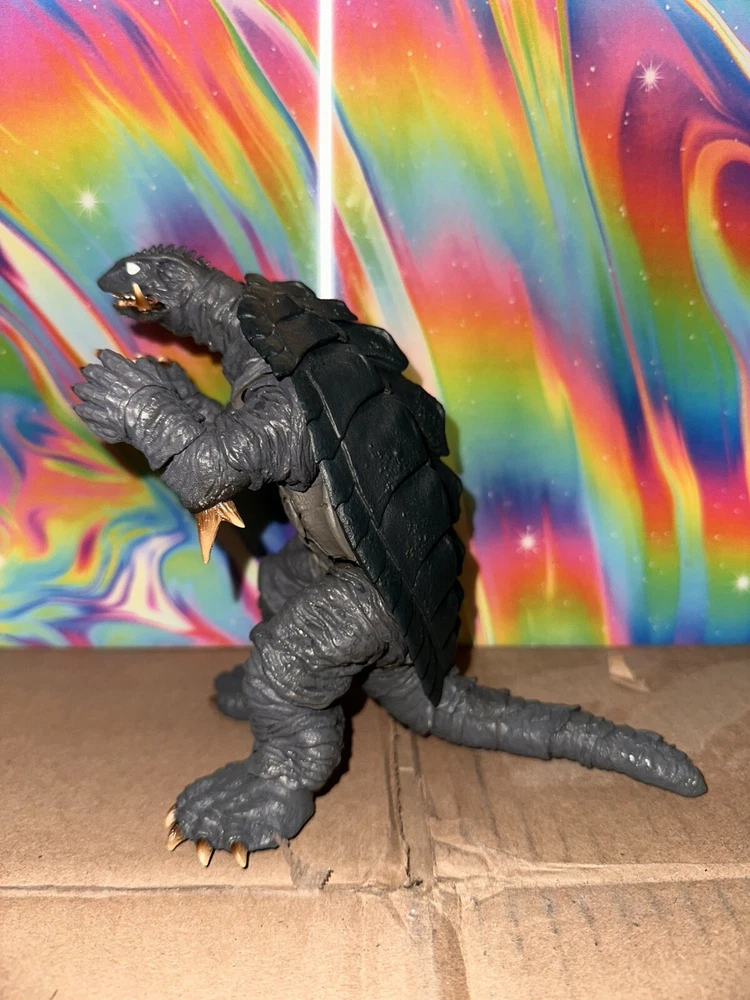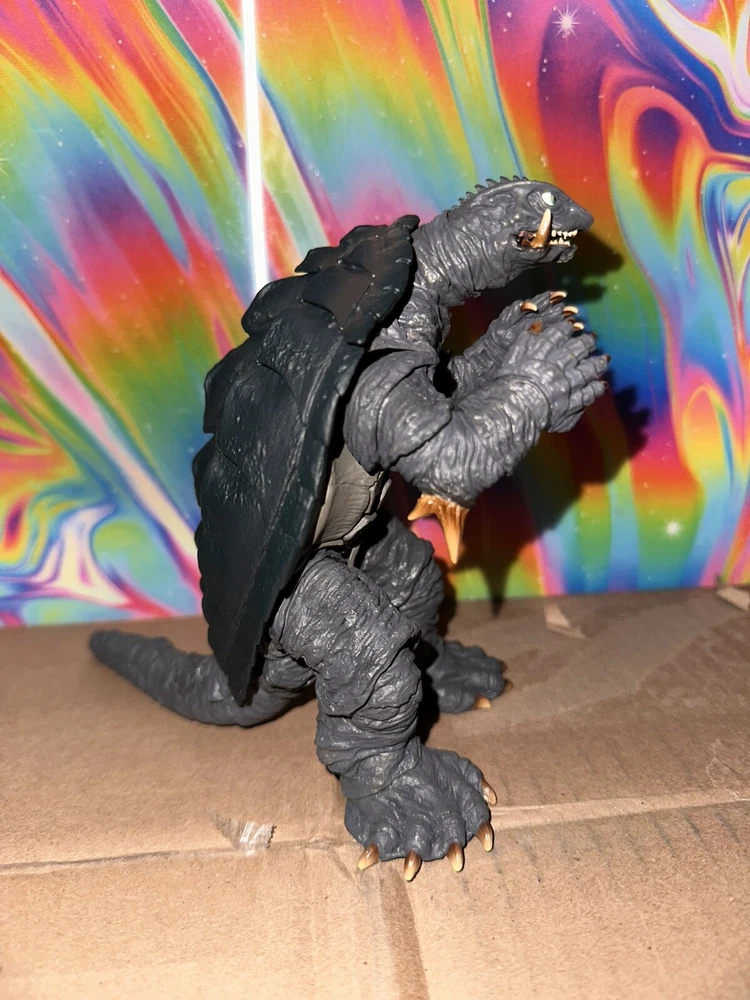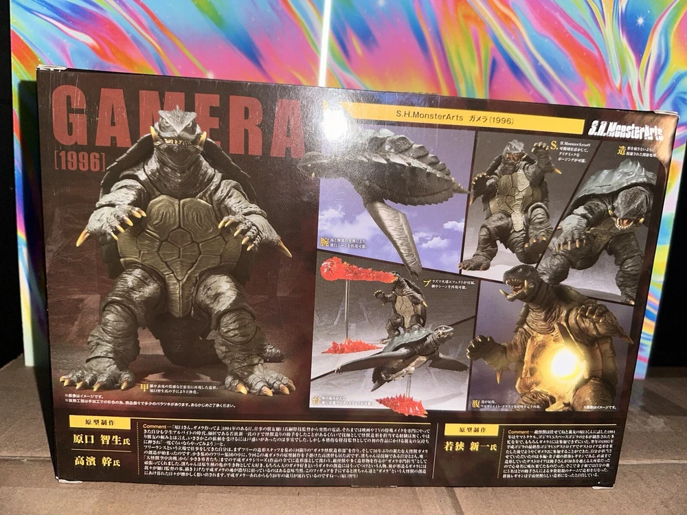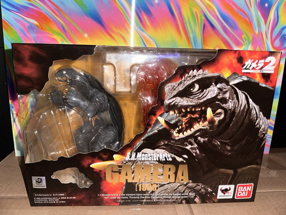 Delve into the world of classic monster memorabilia with the Bandai Tamashii Nations S.H.MonsterArts Gamera action figure. Representing the iconic creature from the 1996 film "Gamera Ⅱ," this collectible is a must-have for enthusiasts of the Godzilla genre and Toho animation. Crafted with meticulous detail, it captures the essence of Gamera's fearsome presence in a dynamic pose, perfect for display. Comes with all parts and accessories, including instruction manual. Only issue with this is the packaging. There’s a weird cut/tear on top corner of the window display. Still intact but it came to me that way