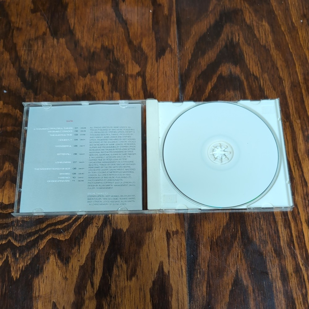 "Bare" by Annie Lennox is a rock and pop music CD released in June 2003 under the record label J Records. Produced by Steve Lipson, the album features a total run time of 49 minutes. With a focus on showcasing Lennox's talents as a singer and songwriter, the CD includes a selection of songs that highlight her unique style and musical vision.