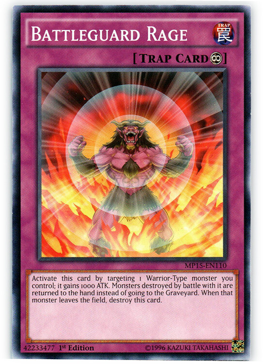 Please, carefully read the following: Image shown is a stock photo and does not reflect the actual card you will be receiving. Please refer to the condition guide below, the title and item description for what you will be receiving. Please also be aware that due to plastic shortages, orders may not always come in a plastic toploader but will always be protected as much as possible to prevent damage. You will receive 1x Battleguard Rage - MP15-EN110 - Common - 1st Edition - Condition: Lightly Played Please refer to the Title and Item Description above for the item being purchased. Delivery delays: Deliveries may not always fall within the estimated delivery dates when shipping outside of Canada and USA. Many factors may contribute to delays in delivering the package such as weather and customs. Please note that delivery to international locations may take up to 8 weeks to arrive . We always ship out orders within 1 business day and after dropping off with the post office, delivery times are out of our control. Feedback: We will always leave positive feedback for you and we ask if you can do the same for us. If there is any reason why the transaction was not up to your expectations, please message us before leaving feedback so we can address the issue. Combined shipping: To receive a combined shipping quote, please make sure that you commit to purchasing on ebay.ca . This allows us to send you a combined shipping invoice before payment. Shipping within the USA (6-10 Business days): FREE! Shipping within Canada (3-8 Business days): FREE! Shipping and handling delay: We aim to ship all orders within 1 business day. We do not ship on weekends and holidays. Condition Guide: We do not sell any cards that are in MINT condition, the best condition that we offer is near mint. Near Mint (NM) - Cards in Near Mint condition show minimal to no wear from shuffling, play or handling and can have a nearly unmarked surface, crisp corners and unblemished edges outside of a few minimal flaws. A Near Mint card may have a tiny edge nick or a tiny scratch or two, but overall look nearly unplayed with no major defects or flaws. Lightly Played (LP) - Cards in Lightly Played condition may have minor border or corner wear or even just slight scuffs or scratches. There are no major defects such as water damage, bends or issues with the structural integrity of the card. Noticeable imperfections are okay, but none should be too severe or at too high a volume. Moderately Played (MP) - Cards in Moderately Played condition exhibit condition issues visible at a casual glance. Cards in Moderately Played condition can have border wear, corner wear, scratching or scuffing, creases or whitening, minor dirt buildup or any combination of mild examples of these marks. A Moderately Played card may have some form of a more major marking, such as spot water damage or creasing that doesnʼt affect card integrity, but not in combination with other issues such as scratches, scuffs or border/edge wear and not impacting a large area of the card. Heavily Played (HP) - Cards in Heavily Played condition show a severe amount of wear. Heavily Played condition can include cards that have major creasing, major whitening, major border wear or any combination of those flaws. (These flaws cannot prevent the card from being tournament playable when sleeved.) Damaged - Cards in Damaged condition can exhibit a tear, bend or crease that may make the card illegal for tournament play, even in a sleeve. Cards in Damaged condition may have extreme border wear, extreme corner wear, heavy scratching or scuffing, folds, creases or tears or other damages that impacts the structural integrity of the card.