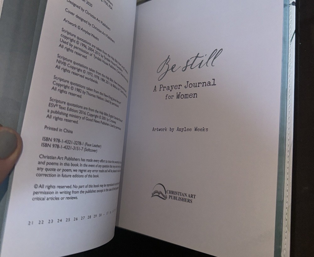 Be Still Prayer Journal for Women in Teal Floral Faux Leather Flexcover