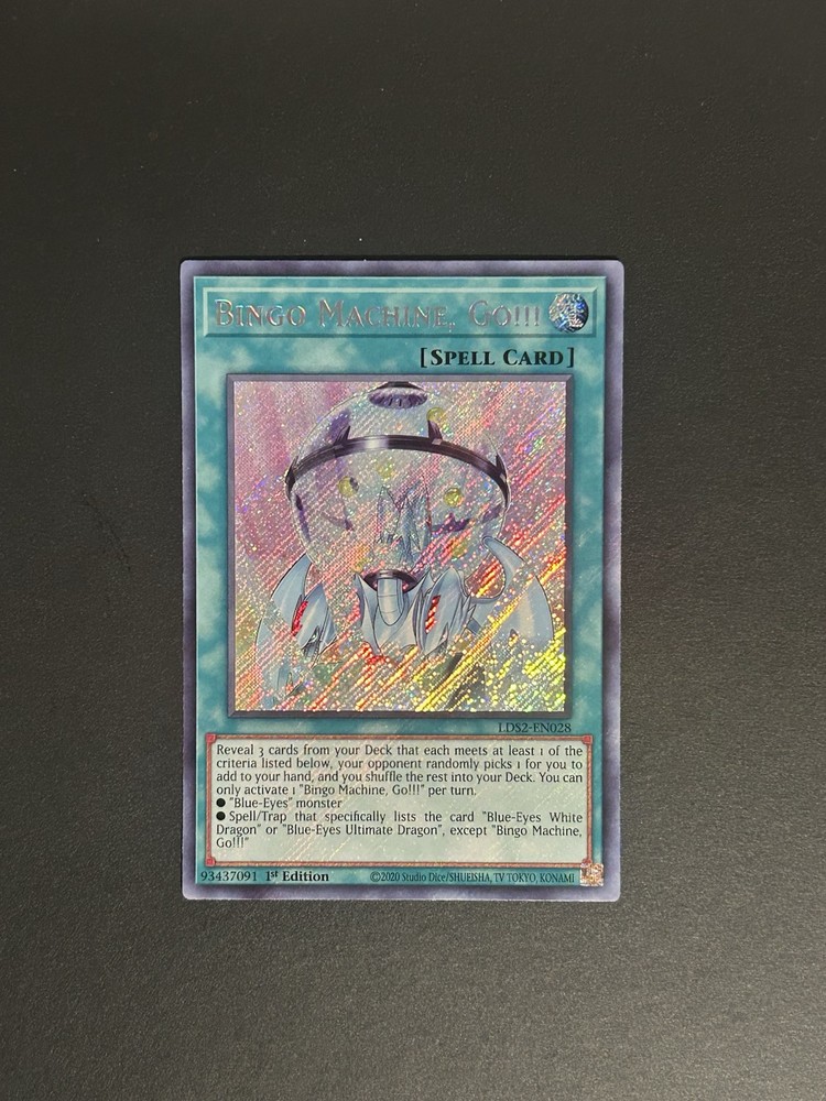 Elevate your Yu-Gi-Oh! collection with the Bingo Machine, Go!!! card from the Legendary Duelists: Season 2 set. This Secret Rare card, numbered LDS2-EN028, is a must-have for enthusiasts and competitive players alike, featuring the sought-after 1st Edition stamp that signifies its rarity and initial print status. Crafted by Konami, the renowned manufacturer of the Yu-Gi-Oh! trading card game, this card is a standout piece with its distinctive art and strategic gameplay potential. Whether for display or for diversifying your deck, the Bingo Machine, Go!!! card is a valuable addition to any Yu-Gi-Oh! assortment. Since I have multiple copies, you may not receive the exact copy in the pictures.