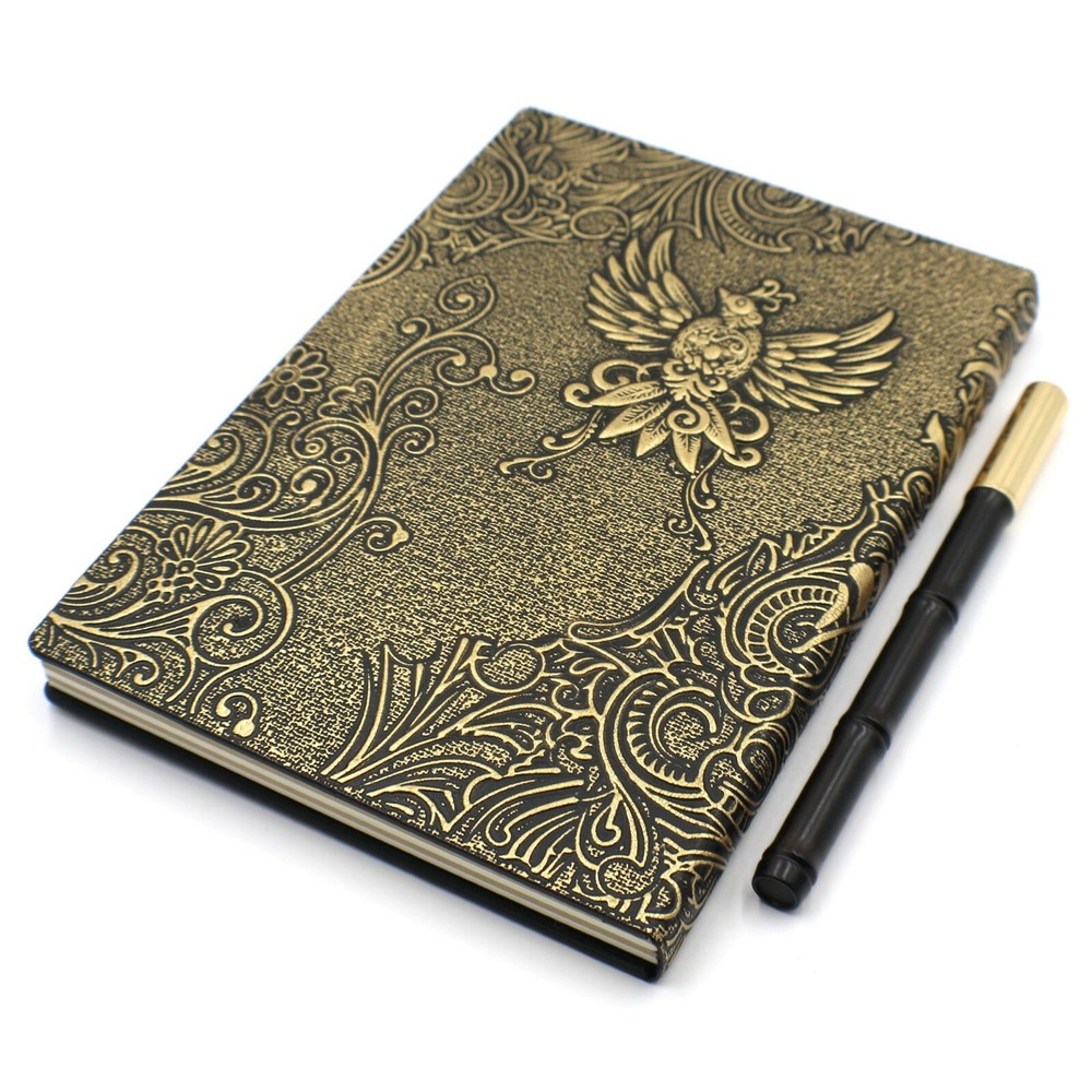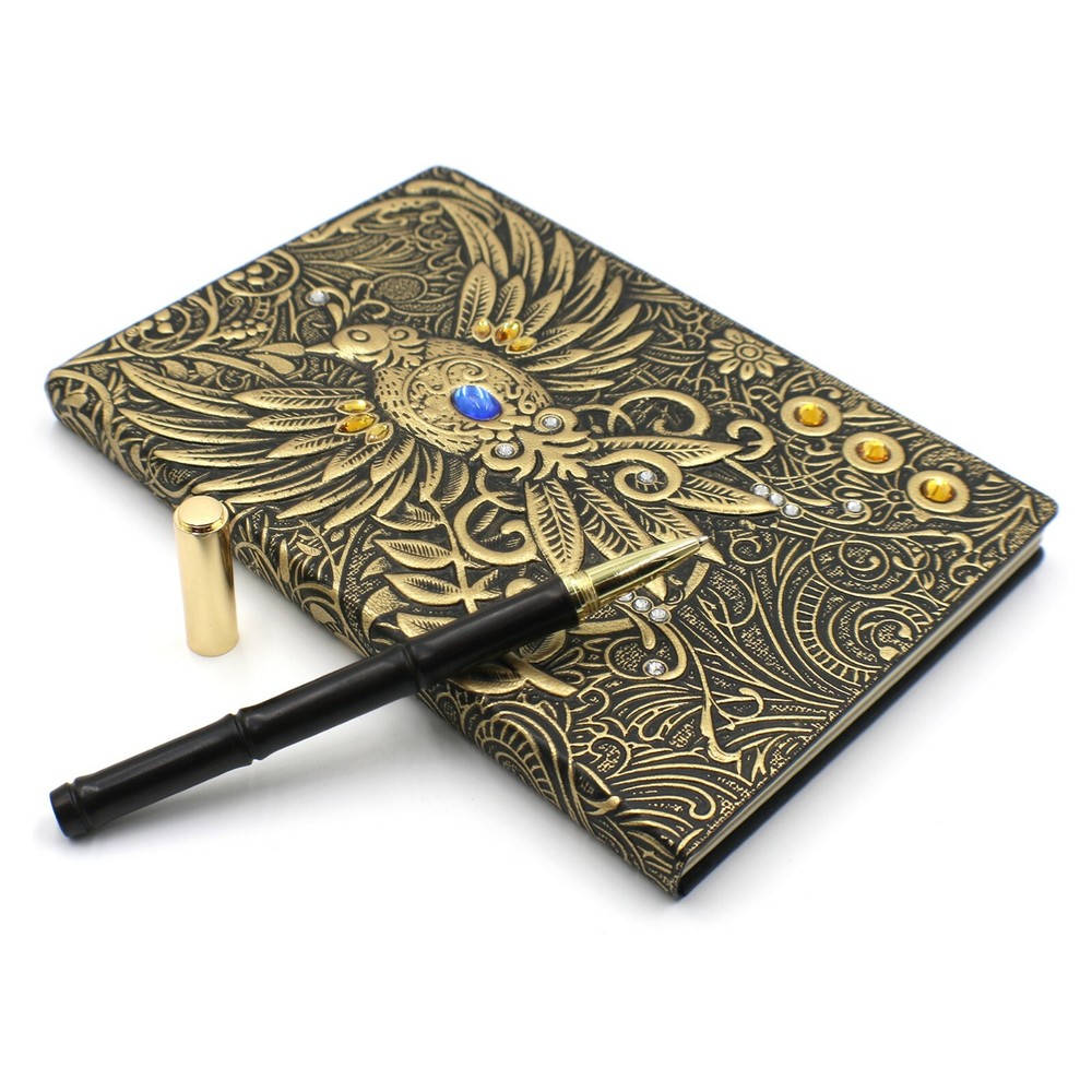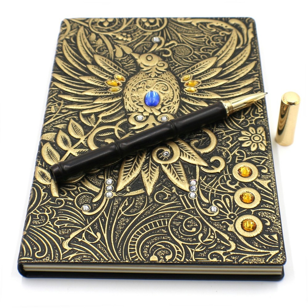 Vintage Leather Bird of Paradise Journal with Ebony Pen