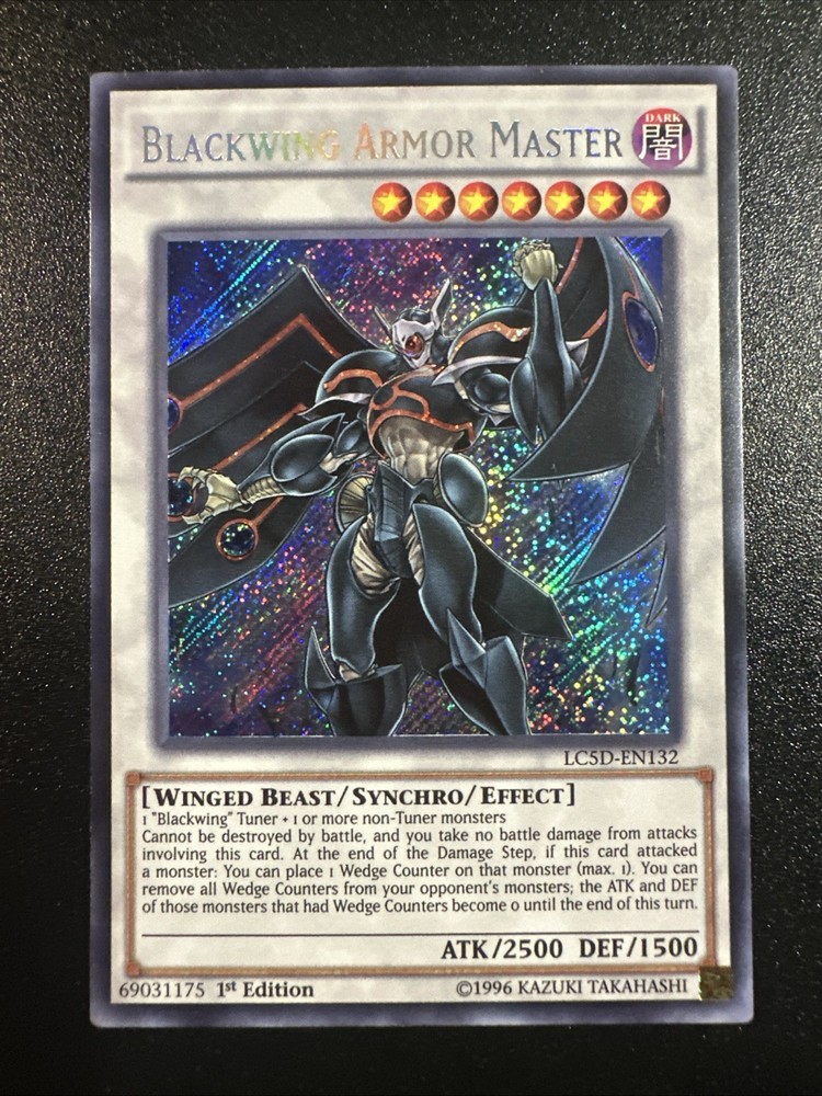 The Blackwing Armor Master LC5D-EN132 card from the Legendary Collection 5D's 1st Edition is a highly sought-after collectible card game item. This card is in near mint or better condition, making it a valuable addition to any collection. With its unique design and rarity, it is a must-have for fans of the game looking to enhance their decks and showcase their love for the Blackwing archetype.