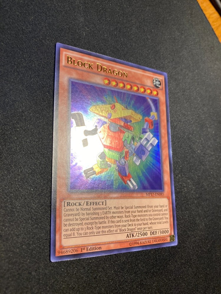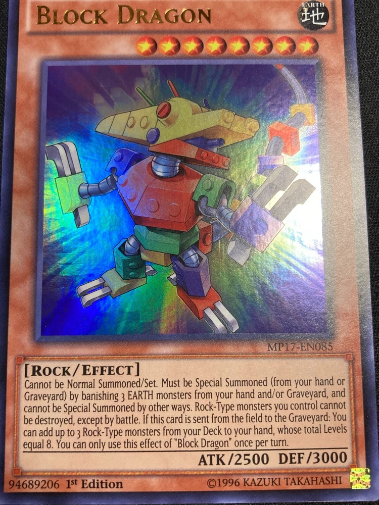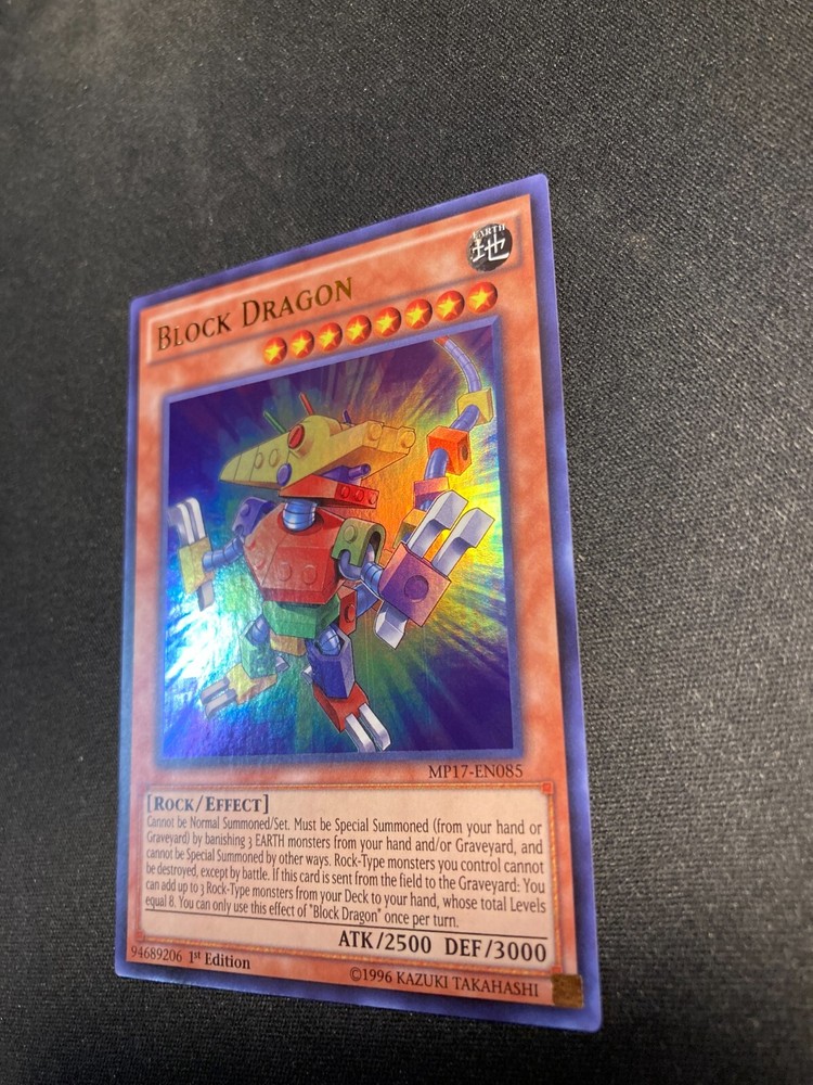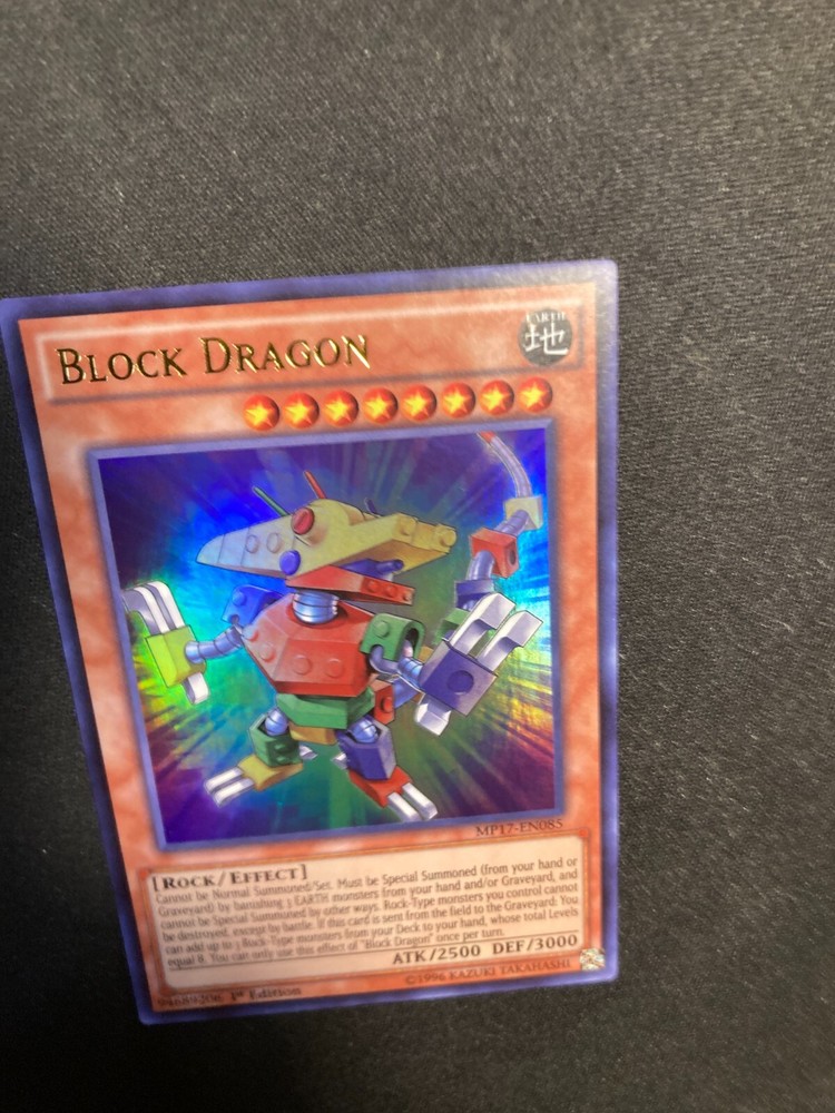 Block Dragon - MP17-EN085 - Ultra Rare - 1st Edition Near Mint You are bidding/buying one (1) card. If you would like additional pictures, just ask. _________________________________________________________________________________________________________ Please check out my other listings @ https://www.ebay.com/str/lechungscards I ship all cards in a penny sleeve put into a top-loader and put into a standard envelope. If you have any question or concerns, please feel free to send me a personal message using the e-bay system. Thanks! !NO INTERNATIONAL SHIPPING OR SALES! (Including Canada)