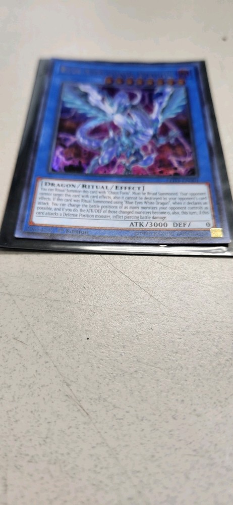 Elevate your Yu-Gi-Oh! TCG collection with the awe-inspiring Blue-Eyes Chaos Dragon from the Legendary Duelists: White Dragon Abyss set. As a card that boasts an attack power of 3000 and is denoted as a Ritual and Effect type, it holds a position of strength in any deck. The Holo finish adds a mesmerizing shine that makes this Ultra Rare card a visually stunning addition as well. With the card number LED3-EN001, this Dark attribute dragon is a must-have for enthusiasts seeking to capture the essence of powerful, mystical creatures in their collection. Manufactured by Konami and presented in English, it's a 1st Edition piece that's ripe for both casual fans and serious collectors alike.