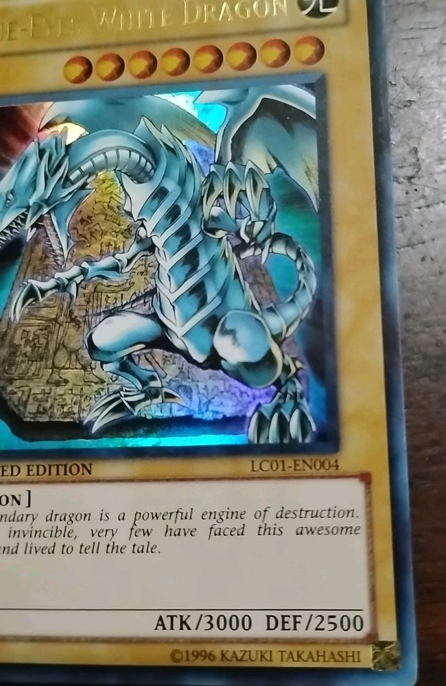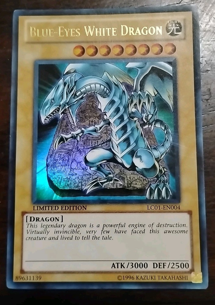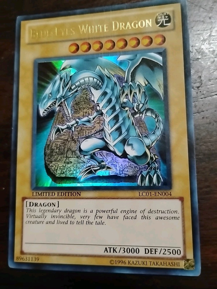 The Blue-Eyes White Dragon LC01-EN004 card from the Yu-Gi-Oh Legendary Collection 1 is a highly sought-after ultra rare card in the Yu-Gi-Oh! TCG. Manufactured by Konami, this limited edition card features a light attribute dragon with powerful attack and defense stats of 3000 and 2500 respectively. This English language card is a must-have for collectors and players alike, known for its strong gameplay abilities and rarity.
