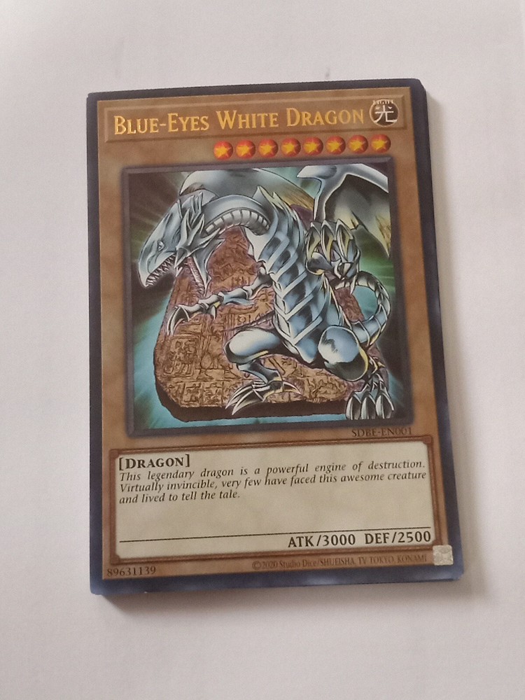 This Yu-Gi-Oh! TCG card, specifically "Blue Eyes White Dragon" from the Legendary Collection Kaiba Mega set, boasts a powerful 3000 ATK and 2500 DEF. Its rarity is ultra rare, making it a highly sought-after addition to any collection. With its beautiful blue color, this dragon-themed card is sure to catch the eye of any fan of the popular card game. The card's features include being unlimited, and its card number is SDBE-EN001. If you're looking to add this monster card to your collection or use it in gameplay, this is the perfect opportunity to do so.