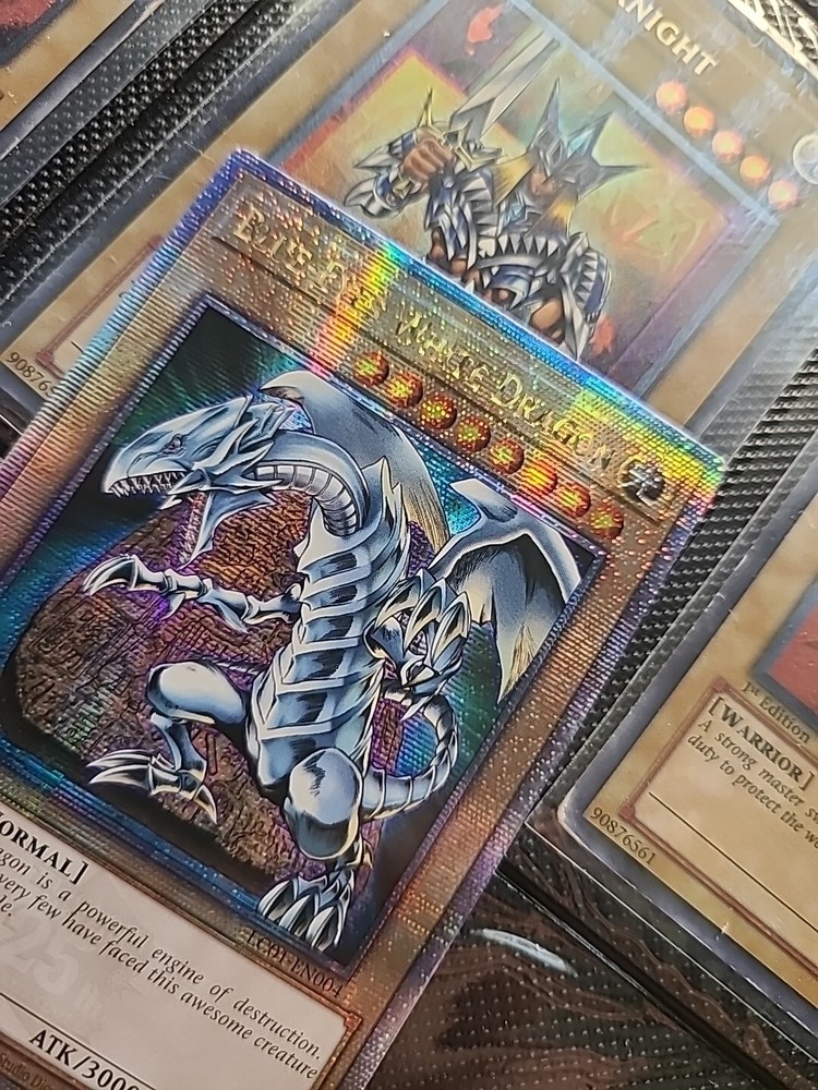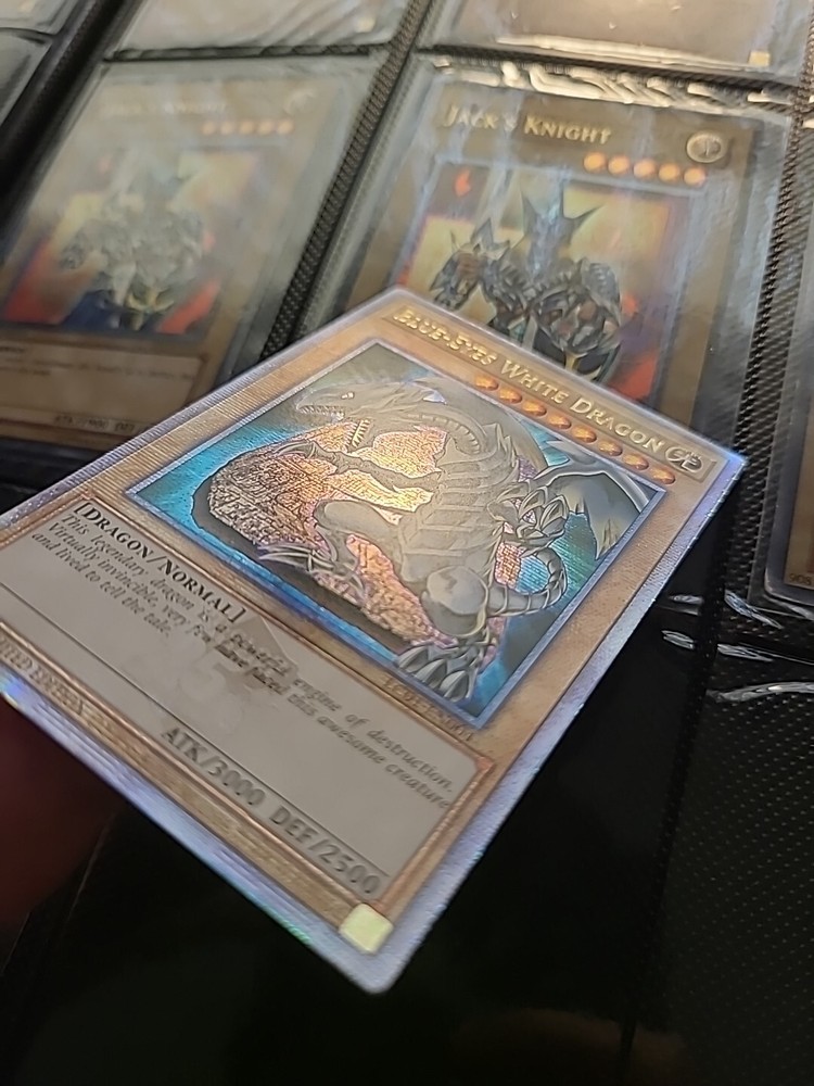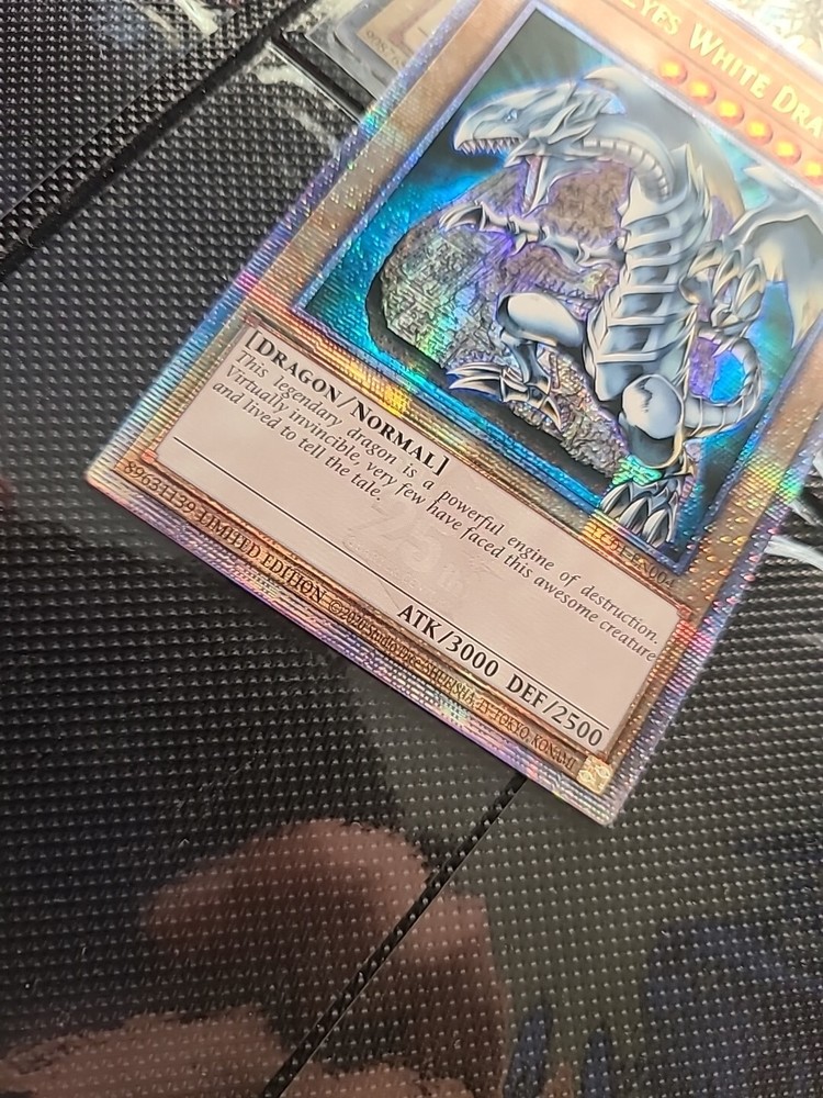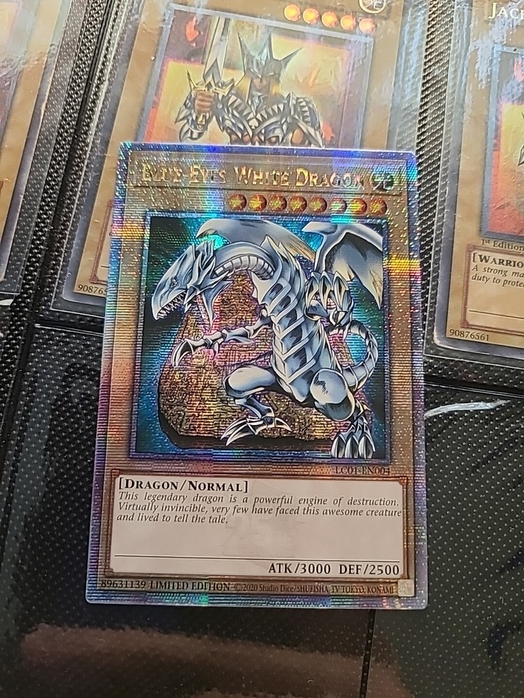 This limited edition Blue-Eyes White Dragon card from the Legendary Collection: 25th Anniversary Edition is a must-have for any Yu-Gi-Oh! TCG collector. With its stunning holo finish and powerful attack and defense capabilities, this Quarter Century Secret Rare card is a rare find that any player or collector would love to add to their collection. The card, numbered LC01-EN004, features the iconic Blue-Eyes White Dragon creature/monster type and is in English language. Manufactured by Konami, this card is of normal type and has an attack/power of 3000 and a defense/toughness of 2500. Don't miss out on the chance to own this legendary card!