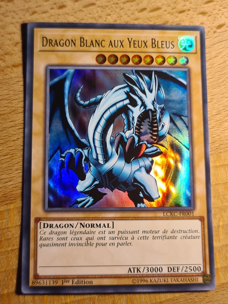 This Blue-Eyes White Dragon card is a stunning collector's piece—French 1st Edition, Ultra Rare, and in fantastic Near Mint condition. The artwork pops beautifully, and the card feels crisp with no noticeable flaws. Perfect for serious Yu-Gi-Oh! collectors or fans of the iconic monster. Seller provides clear photos so you know exactly what you're getting. Smooth transaction and great packaging—highly recommended!