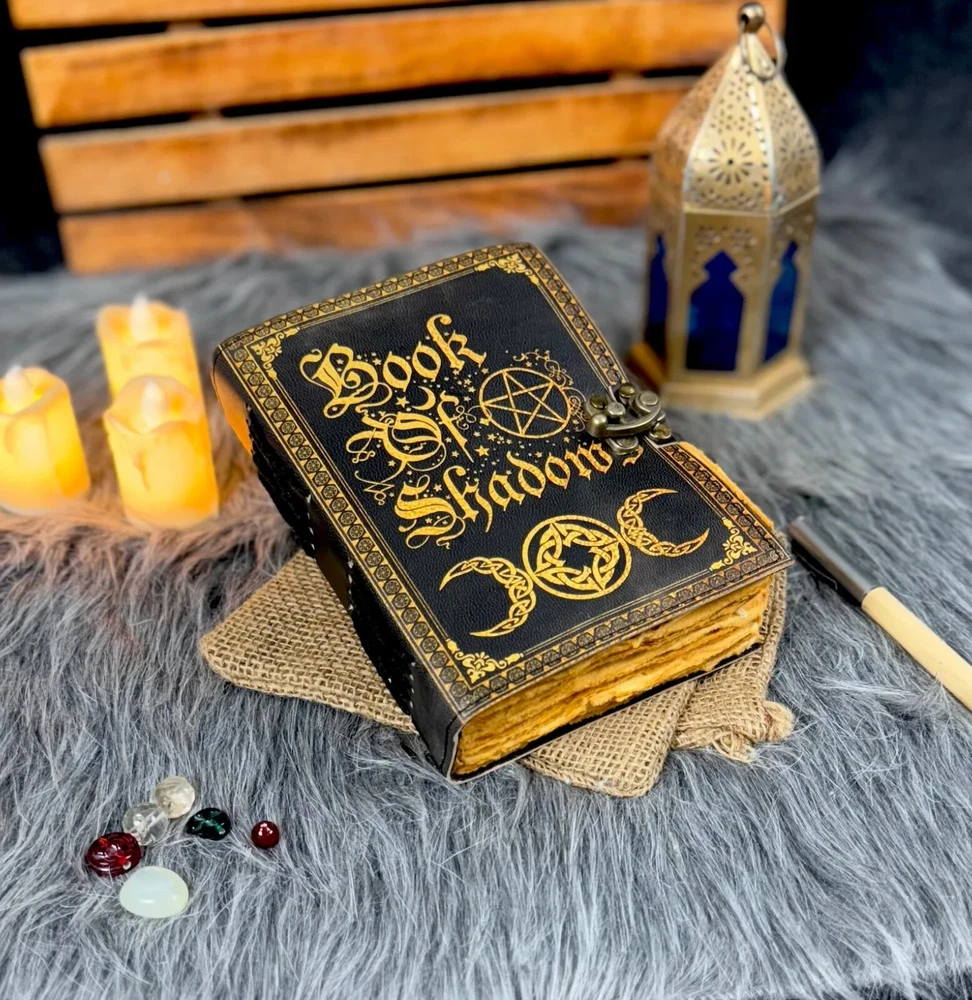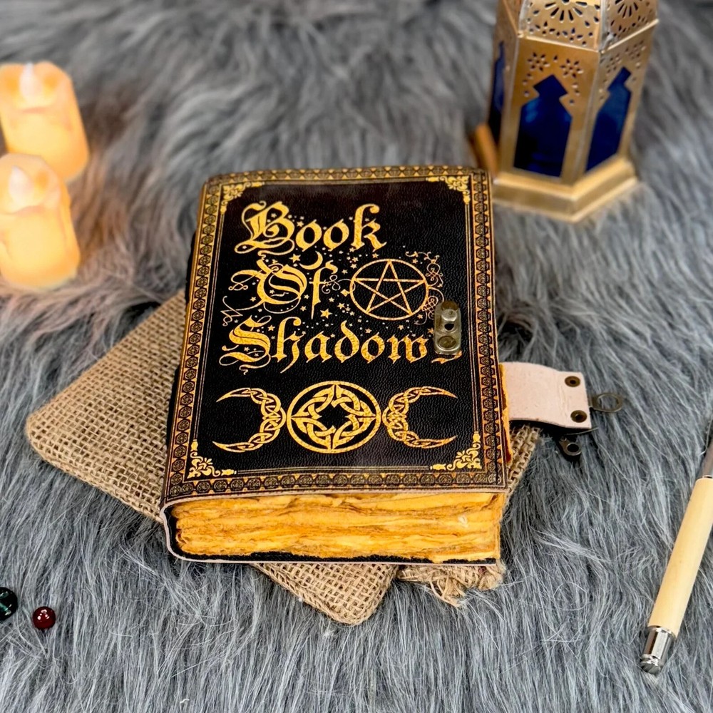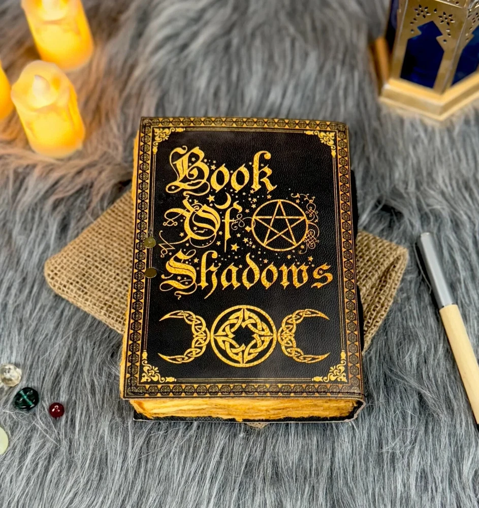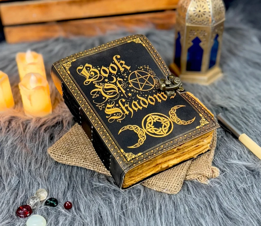 This Book of Shadows leather notebook is a luxurious and limited edition grimoire journal made with a leather cover. Handmade in India, this magical spell notebook is perfect for those seeking a unique and high-quality writing instrument. The notebook is not signed and not personalized, making it a versatile option for anyone looking to record their thoughts, plans, or spells in a stylish and durable format. Book Of Shadows Leather Grimoire Magic Book Celtic journal The Morrigan Leather book leather journal Travel notebook Christmas Gift supply. ★ Name :- book of shadows printed Journal This Journal Is Made From A High Quality Leatherette With Book of shadows printed Finish And Vintage Looking Paper ★ DIMENSIONS :- The Journal Is Available In 4 Perfect Sizes. 13 inches" x 10 Inches. 10 Inches" x 7 Inches. 8 Inches" x 6 Inches. 7 Inches" x 5 Inches. ★ PAPER :-The Inside Of This Journal Is Handmade Decal Edge Paper That Looks Vintage And Well Stitched Whose Number Is 200 (Please Count Both side) If You Want White Plain Paper So Please Select Right Paper Option There Are Two Options Available. ★ HANDCRAFTED FROM GENUINE LEATHER: Each Journal Is Specially Designed And Handmade From Premium Leather. Artful Hand Stitching To Create A Timeless Space For Your Thoughts. ★ TELL YOUR STORY :- We Designed This Classic Leather Journal As A Time Capsule For Your Thoughts. Capture Your Important Memories, Accomplishments (And Failures), Life-Changing Moments And Evolving Dreams As A Keepsake To Reflect Upon In Years To Come. ★ THE PERFECT GIFT :-Quality You Can Trust: High-Quality Craftsmanship Makes This An Essential Tool For Poetry, Art, Sketching, Writing, Drawing, Calligraphy Leather Journal Give Your Loved Ones A Thoughtful Gift That Will Last For Years To Come! Great For A Birthday, Anniversary, Or Graduation Ignore :- Travel journal Antique journal Handmade leather journal Sun and moon Leather journal celestial embossed Book of shadows Grimoire journal Sun and moon journal Blank spell book Magic moon Ying yang celestial sun and moon Celestial journal Journal for women Magic book Triple Moon Live by the sun Love by moon Book of shadows Blank spell book Witches journal Sun and moon Wiccans journal Wicca pagan Vintage deckle edges paper