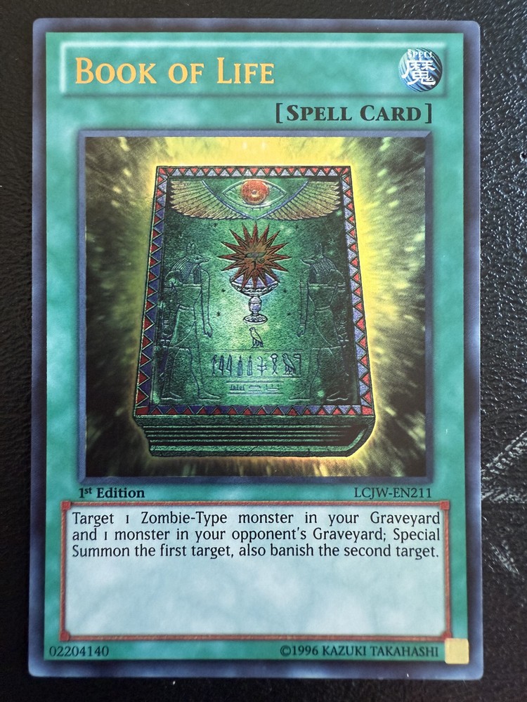 The Book of Life LCJW-EN211 card is an ultra rare 1st edition spell card from the Yu-Gi-Oh Legendary Collection 4: Joey's World set. Manufactured by Konami, this English-language card belongs to the Spell-Normal card type and has a card number of LCJW-EN211. It is a collectible card game item perfect for fans of the Yu-Gi-Oh! TCG, offering unique features and gameplay opportunities within the trading card game community. This card does not have any defense or attack values, making it a valuable addition to any Yu-Gi-Oh card collection.