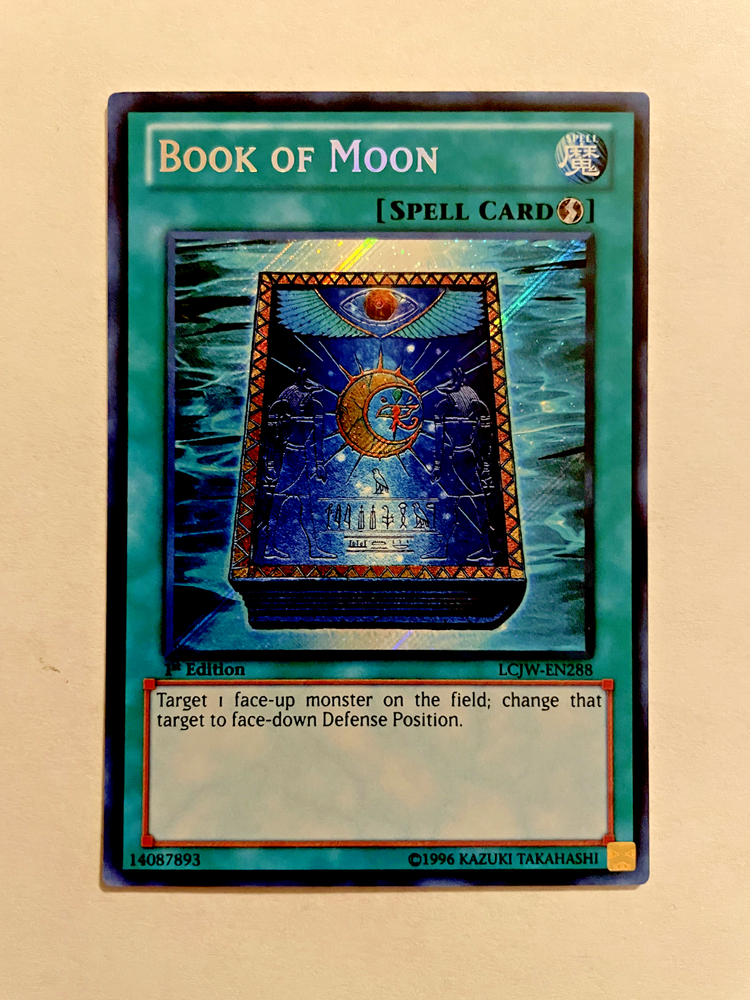 Dive into the strategic depths of the Yu-Gi-Oh! TCG with the Book of Moon card from the Legendary Collection 4: Joey's World set. This Secret Rare card, numbered LCJW-EN288, is a must-have for Spell-Normal enthusiasts looking to enhance their deck with powerful card manipulation capabilities.Featuring the sought-after 1st Edition stamp, this English language card is produced by Konami, ensuring top-notch quality and authenticity. Whether you're a seasoned player or a collector, the Book of Moon offers a tactical edge in gameplay and is a prized addition to any Yu-Gi-Oh! collection.