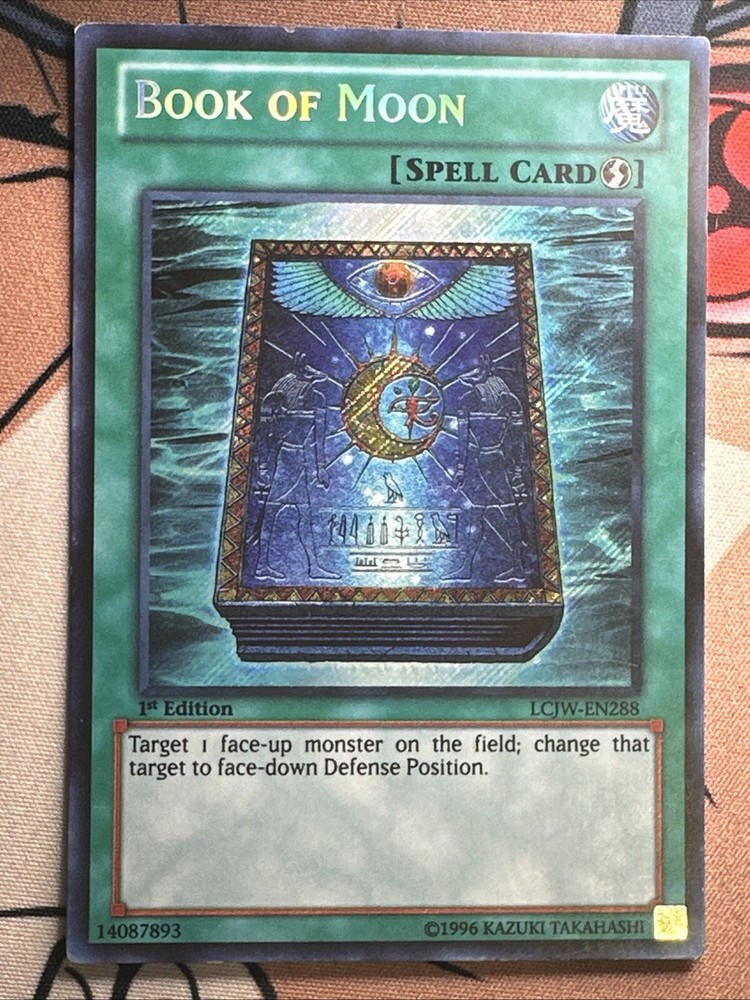 Just got this Secret Rare Book of Moon—super crisp and in perfect Near Mint condition! The card arrived quickly and was packed with care. Love the LCJW set, and this 1st Edition copy is a must-have for any serious Yu-Gi-Oh collector or player. Seller was clear and responsive—highly recommend! The playmat in the pics looks awesome too!