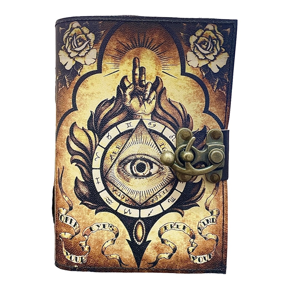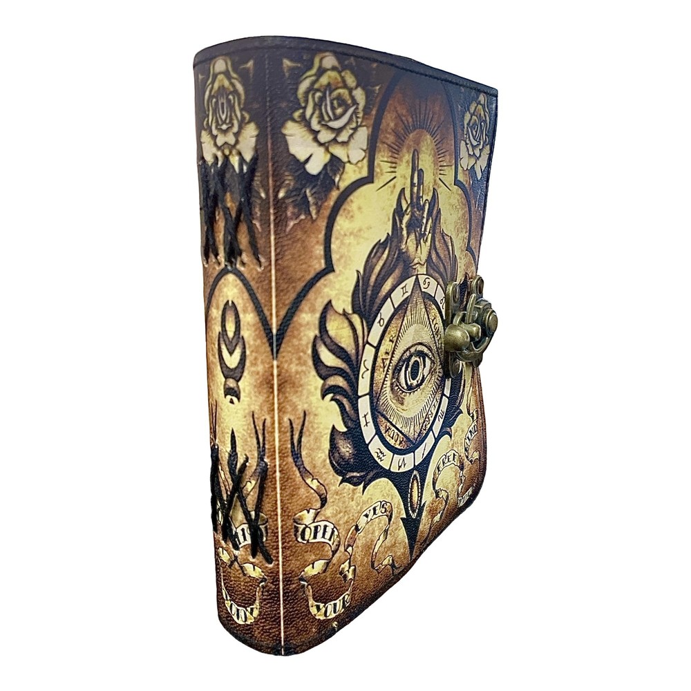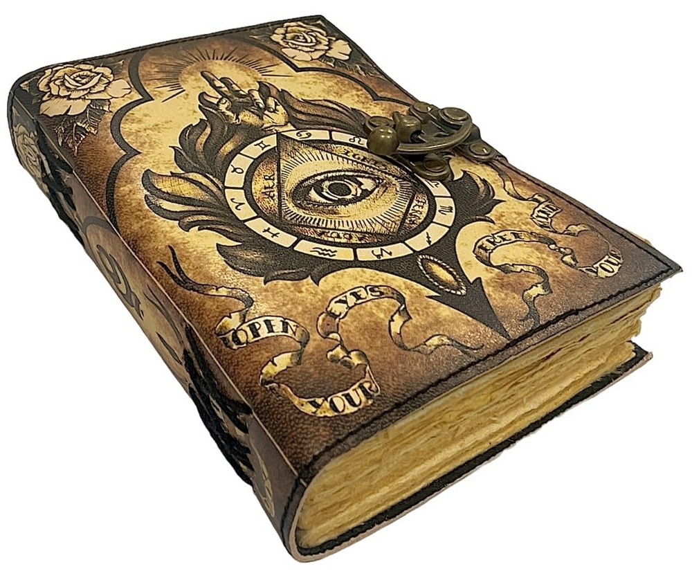 Book of Spells Leather Bound Journal Deckle Edge Paper Grimoire Printed Diary Third Eye Notebook Spiral Gothic Notebook Antique Vintage Book for Men and Women (The Third Eye) BEAUTIFULLY CRAFTED: Our handmade artisan leather bound spell book grimoire journals are crafted from genuine leather. The black colouring gives it a beautiful antique vintage feel. Being hand-made from natural leather. The cover features a beautiful gold designing. IDEAL SIZE & THICK PAPER: Compact 7X5" size, easy to carry around or slip into a bag; and not so small that you can’t express any creativity - 240 pages of smooth craft paper allowing the pen to glide effortlessly across the page. PERFECT FOR GIFTING: Suitable for both men or women to write in, this locking diary daily travelers notebook is perfect for an avid writer, or Harry Potter fan looking for a magic spell book. Ideal to give as a birthday gift, valentines, halloween, graduation or wedding anniversary present. MYSTICAL DESIGN: Immerse yourself in the world of magic with a leather-bound journal featuring a mystical design, perfect for capturing your spells, rituals, and spiritual reflections. Handcrafted to perfection by the artisans of Rajasthan, India OUR PROMISE: We are positive you will love our products, but if you don't for any quality reason, we will replace or for up to 30 days after purchase. Our friendly team are always available to answer any questions you might have. MANY USES - This aesthetic Guardian of nature Journal can be used as a Hocus Pocus gifts , the lovers tarot journal, gothic notebook, skull journal, spell books halloween decorations, book of spells halloween decor. grimoire spell book, drawing or sketching and compact for carrying in your bag. Ideal for alternative Artist Sketchbooks, Photo Album, Traveling Notes, Business Executive, Logbook, hocus pocus spell book , Journalists, Food Planner, old spell notebook, antique handmade skull journal. Shipping We ship within Three business days of payment, usually sooner. Some delivery times are longer than normal due to increased demand. We use a selection of shipping services such as UPS, FedEx, USPS etc. We only ship to the lower 48 states, no APO/FPO addresses or PO Boxes allowed. Local pickups and combined shipping options are not provided at this time. Return You can return a product for up to 30 days from the date you purchased it. Any product you return must be in the same condition you received it and in the original packaging. Please keep the receipt. Payment We accept payment by any of the following methods: PayPal Please pay as soon as possible after winning an auction, as that will allow us to post your item to you sooner! Feedback Customer satisfaction is very important to us. If you have any problem with your order, please contact us and we will do our best to make you satisfied. Contact Us If you have any queries, please contact us via ebay. We usually respond within 24 hours on weekdays. Thank you for shopping at our store.