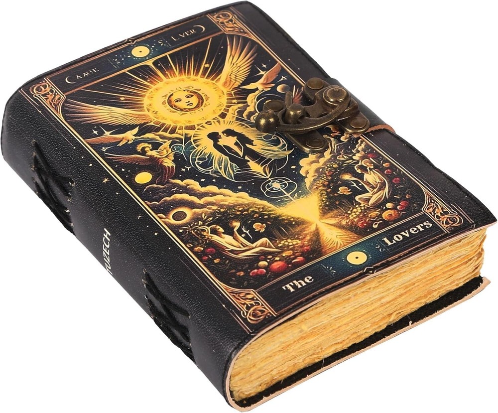 BEAUTIFULLY CRAFTED: Our handmade artisan leatherbound spellbook grimoire journals are crafted from genuine leather. The black colouring gives it a beautiful antique vintage feel. Being hand-made from natural leather. The cover features a beautiful gold designing.. VINTAGE LOCK AND STURDY BINDING - The vintage clasp lock will keep all your valuable writing locked inside.Sturdy hand stitched binding to make sure that no paper comes out loose from your Spell BOOK. PERFECT FOR GIVING: Suitable for both men or women to write in, this locking diary daily travelers notebook is perfect for an avid writer, or Harry Potter fan looking for a magic spell book. Ideal to give as a birthday gift, valentines, halloween, graduation or wedding anniversary present. Spell Book Tarot Journal Merchandise Popsocket Grimoire Wiccan Witch Prop Spells Decor Skull Lovers Blank Notebook Gift Props Spellbook Blanks With Clasp Coloring Books For Men Women Adult and you can keep this journal at your bedside as like memory of your loved ones.. Handcrafted to perfection by the artisans of Rajasthan, India MANY USES - This aesthetic Lovers Journal Can be used as a Hocus Pocus gifts , the lovers tarot journal, gothic notebook, skull journal, spell books halloween decorations, book of spells halloween decor. grimoire spell book, drawing or sketching and compact for carrying in your bag. Ideal for alternative Artist Sketchbooks, Photo Album, Traveling Notes, Business Executive, Logbook, hocus pocus spell book , Journalists, Food Planner, old spell notebook, antique handmade skull journal Colour Black Pages 240 Pages Cover Material Leather Style The Angel Lovers 1. PAYMENT POLICY Payment should be cleared within 3 days of sale and we prefer payments through eBay Payment Options. 2. SHIPPING POLICY Item will be delivered Worldwide by Registered Airmail Service (India Post, DHL Express, FedEx) which may take 10 to 15 days but we assume a maximum of 30 business days to deliver it. We also provide Speed Post Shipping Service (EMS) for this service you need to pay shipping charges as per the item weight and country location. It will certainly reach much faster than the usual Airmail Service. 3. CUSTOM POLICY Import duties, taxes and charges are not included in the item price or the shipping charges. These charges are the buyer's responsibility. Please check with your local customs authority to determine these additional costs prior to bidding or buying. 4. RETURN POLICY In case of any problems after receiving the item, please contact within 7 days and only the purchase amount will be refunded not the postage amount. One-side postage for returning the item will be paid by the buyer. Money will be refunded by eBay Payment Options after the item is received. 5. LEGAL DISCLAIMER While we work, we ensure that product information is correct and the real product will as similar as it looks in the picture but sometimes it may look slightly different from real because sometimes manufacturer changes the packing. So please understand this fact & if you have any query related to this, feel free to reach us. 6. FEEDBACK POLICY Please do not leave a negative feedback as a way to communicate. Any rating given to a seller can neither be changed nor modified. So better communicate for faster resolution to any disputes. If you have any concerns regarding your purchase please contact, satisfactory resolution will be reached. If you like our product tell others, if not tell us, we will do our best to deliver as per commitment. Our first priority is buyer's satisfaction and we always ready to take every possible step in buyer's favor. 7. CONTACT US For any query, we request you to either use the ask question button, normally we reply back on the same day or the next working day or you can mail us reply time for emails is 12-24 Hours. We are available 24*7 at your service. IMPORTANT NOTES 1. To discuss BULK ORDERS contact us anytime 24*7 and we definitely revert within 12-24 hrs. 2. Please share a POSITIVE FEEDBACK if you are satisfied with our product/service after delivery. 3. Do Not Leave a NEGATIVE FEEDBACK or Do Not Open INR/INAD Request; just send us a message if you have any issues with our product or service. It cannot be removed and will not give any benefit to you as well. We are 24*7 available for satisfactory resolution. 4. Please ensure that there is SOMEONE TO RECEIVE THE PARCEL ON YOUR ADDRESS OF DELIVERY. If there is no one to receive the parcel at the time of delivery, the postal/courier service will leave a note at your home and you will have to pick up the parcel from the post office yourself by providing the registration number and proof of your identity. If the parcel is not picked up after the time period, it may be returned back to us as unclaimed. ""THANK YOU"" Track Page Views With Auctiva's Counter