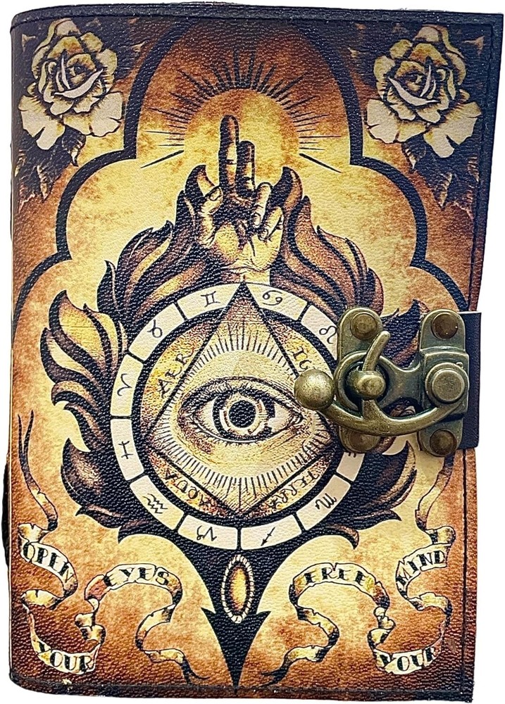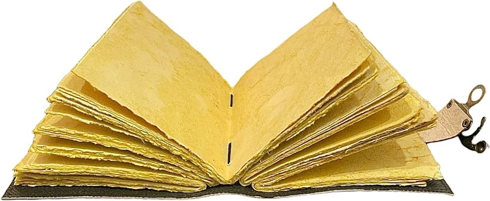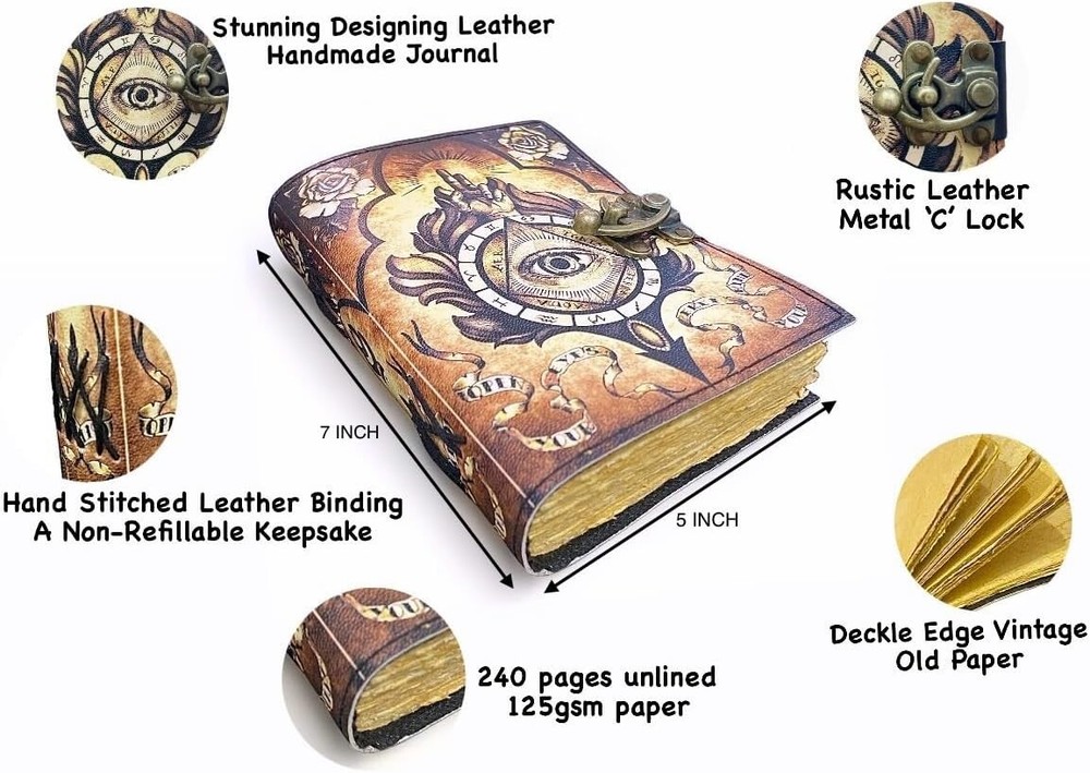 About this item BEAUTIFULLY CRAFTED: Our handmade artisan leatherbound spellbook grimoire journals are crafted from genuine leather. The black colouring gives it a beautiful antique vintage feel. Being hand-made from natural leather. The cover features a beautiful gold designing.. IDEAL FOR TAROT ENTHUSIASTS: Perfect for tarot enthusiasts and practitioners, providing a special space to connect with The Devil Tarot symbolism and record your tarot-related experiences. PERFECT GIFT: A thoughtful and visually striking gift for both men and women, especially those interested in tarot, divination, and the mystical arts. TAROT REFLACTIONS SECTION: Dedicated section for Tarot reflections, allowing you to explore and document insights related to The Devil Tarot card and your personal journey with tarot readings Handcrafted to perfection by the artisans of Rajasthan, India OUR PROMISE: We are positive you will love our products, but if you don't for any quality reason, we will replace or refund for up to 30 days after purchase. Our friendly customer service team are always available to answer any questions you might have. MANY USES - This aesthetic Lovers Journal Can be used as a Hocus Pocus gifts , the lovers tarot journal, gothic notebook, skull journal, spell books halloween decorations, book of spells halloween decor. grimoire spell book, drawing or sketching and compact for carrying in your bag. Ideal for alternative Artist Sketchbooks, Photo Album, Traveling Notes, Business Executive, Logbook, hocus pocus spell book , Journalists, Food Planner, old spell notebook, antique handmade skull journal