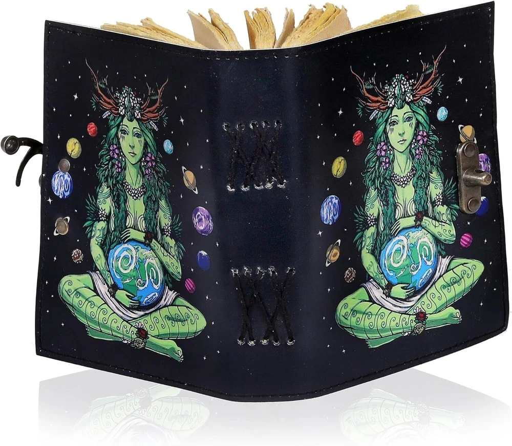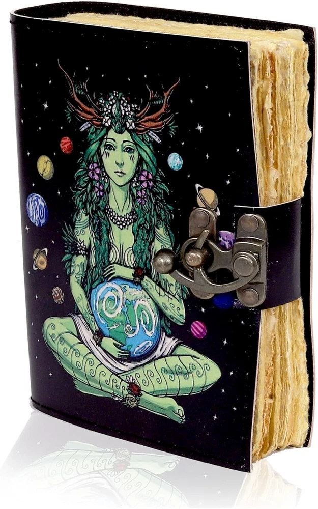 Mother of Earth Leather Spell Book Journal with Deckle Edges and Vibrant Pages