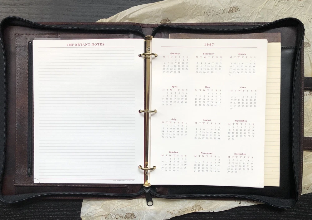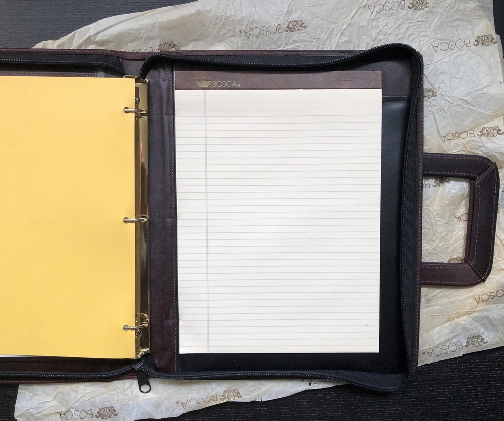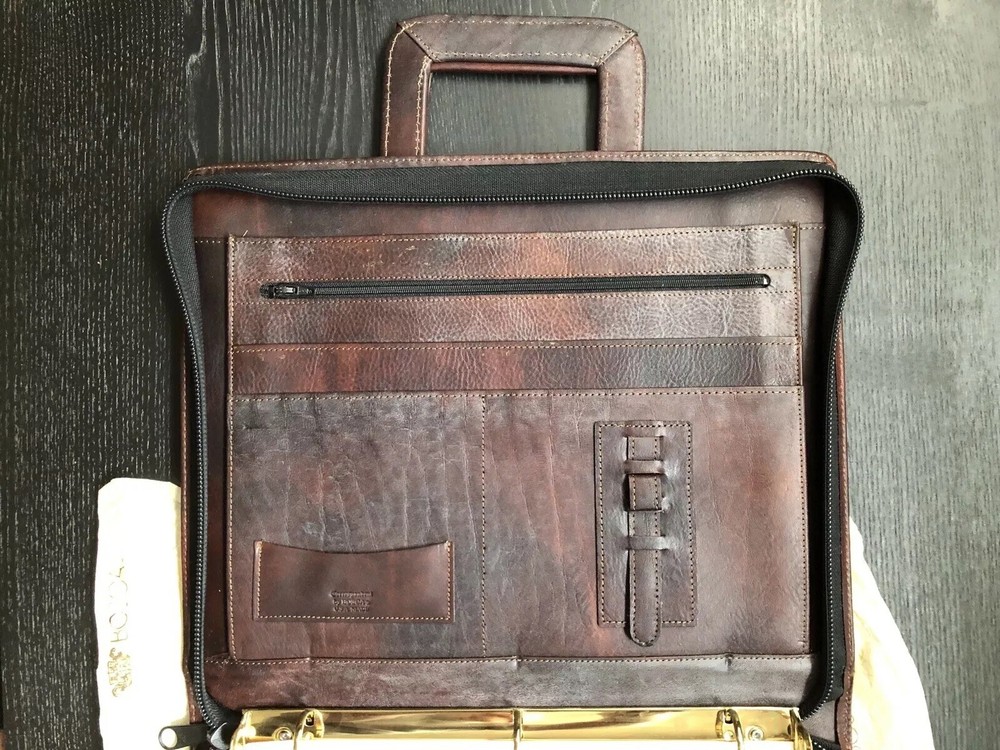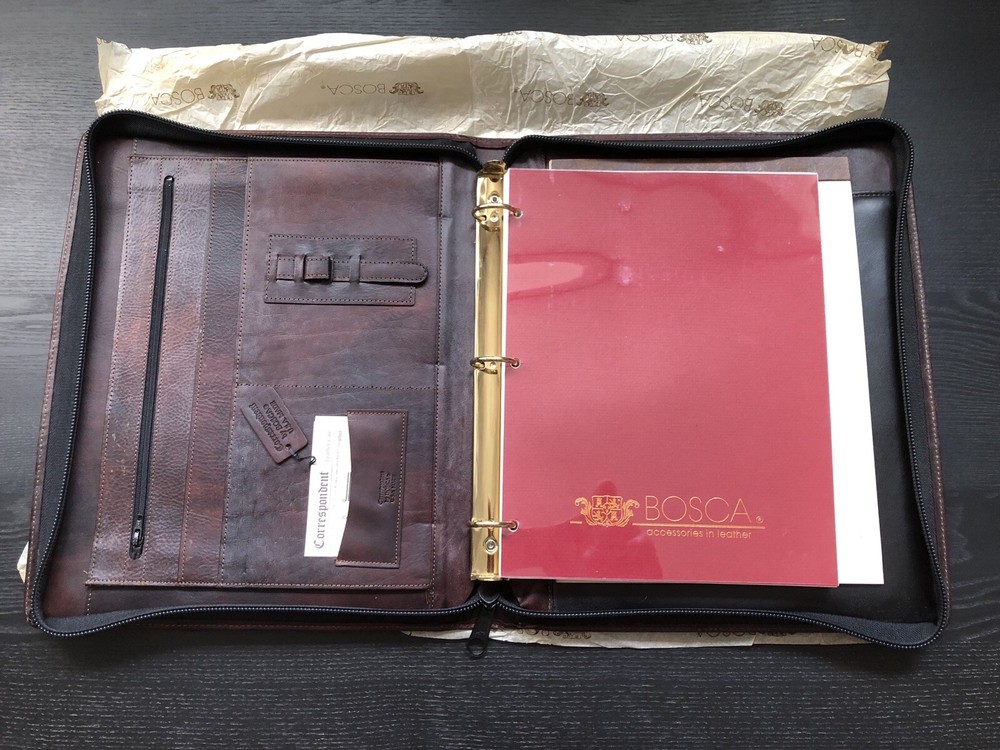 View more great items Bosca Correspondent Document Portfolio Vintage - 1996 Color - Aged Port 3 Ring Zip Organizer w/ Notepad Business Card Holder Retractable Handles Plenty Of Pockets For Documents etc. 100% Leather Perfect for a Lawyer, Business Executive or Entrepreneur Don't hesitate to reach out with any questions and remember to like and follow my store. Rare & Vintage Item For Personal Use or As An Authentic Period Piece For A Film or Movie Set or To Complete A Missing Item In Your Personal Collection. Combined Shipping is available when you purchase more than one item at checkout. Simply wait for the invoice to be adjusted prior to paying.