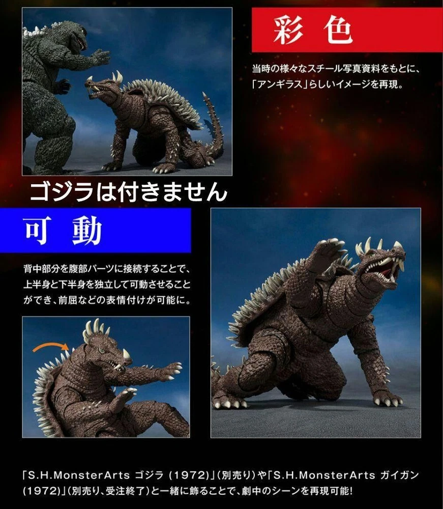 Absolutely thrilled with this S.H.MonsterArts Anguirus figure! The seller shipped fast with secure packaging, and FedEx delivery was super quick—arrived in perfect condition. Love the attention to detail on this 1972 version, and knowing it's brand new unopened gives me peace of mind. Seller's communication was excellent, provided tracking right away, and offered flexible shipping options. Highly recommend for any Godzilla fan—this Anguirus is a must-have for the collection!