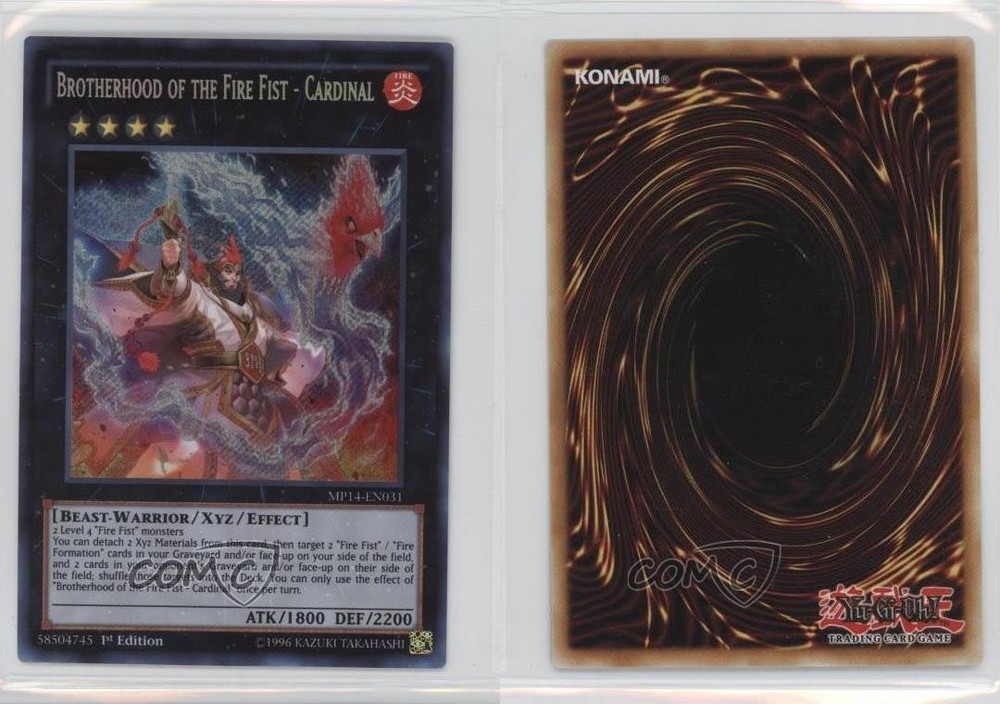 2014 Yu-Gi-Oh! Mega-Tins Mega Pack - [Base] - 1st Edition #MP14-EN031 Brotherhood of the Fire Fist - Cardinal COMC Item: 29798329 - YuGiOh Card - Featuring Brotherhood of the Fire Fist - Cardinal Search for more: 2014 Yu-Gi-Oh! Mega-Tins Mega Pack Search for more: 2014 Yu-Gi-Oh! Mega-Tins Mega Pack - [Base] - 1st Edition View all of our Listings Auctions Buy It Now About Us Located in the beautiful Pacific Northwest, COMC (Check Out My Cards) is the world's largest consignment service for trading card singles. More than 10,000 people have used our consignment service to list over 50 million trading cards. Find out how we can help you consign your items on eBay by contacting us through eBay messaging. COMC -- "The Safe & Easy Way to Buy & Sell" Raw Condition for Modern Cards Unless otherwise noted, raw modern cards are listed in Near Mint-Mint condition or better. A NM-MT card appears to be Mint at first glance, but upon closer inspection, may exhibit some of the following: minor print defects (e.g. roller marks, print line, dimple), minor scratches, slight edge wear, and slight corner wear. Centering is clearly visible in the images provided and does not factor into our condition assessment. Raw Condition for Vintage Cards Unless otherwise noted, raw vintage cards are listed in Excellent condition or better. An EX card may exhibit some of the following: minor rounding of corners, surface wear, print defects, light scratches, and slight edge wear/chipping. Centering is clearly visible in the images provided and does not factor into our condition assessment. Domestic Shipping Combined shipping for multiple items is available. To receive combined shipping, please ensure all desired items are in your eBay shopping cart before proceeding to checkout. eBay limits orders to 40 items per order. We automatically combine multiple orders placed on the same day. If you place multiple orders on the same day, please contact us to request a refund of applicable shipping costs. Signature confirmation may be required on invoices over $400. All cards are protected and shipped securely. International Shipping COMC offers eBay's International Shipping (EIS) for international orders under $2,500* (see country exceptions below). All duties and import fees are paid at checkout; in the rare event that there are additional import fees upon delivery, these are borne by the buyer. EIS packages route through a shipping hub in Erlanger, KY before shipping to their final destination. Please note that EIS does not allow for combined shipments. The shipping rates are determined by eBay and cannot be adjusted. *Maximum sale price exceptions: Colombia, Kuwait ($2,000); Taiwan ($1,539); Chile, Costa Rica, Guatemala, Honduras, Trinidad and Tobago ($1,000); Antigua and Barbuda, Aruba, Belize, Dominica, Grenada, Philippines, Saint Kitts and Nevis, Saint Lucia, Montserrat, Turks and Caicos Islands ($500); Dominican Republic, El Salvador ($200). Please request a shipping quote through eBay messaging for orders that exceed the maximum sale price supported by eBay's International Shipping. You will be responsible for all duties and import fees for international orders shipped outside the EIS. All cards are protected and shipped securely. Payment COMC does not accept offers on our cards through our eBay storefront. COMC utilizes eBay’s managed payments system. If you are experiencing difficulties making a payment, please contact eBay for assistance. Return Policy Returns are only accepted on the rare occasion the item is not as described. If you are making a return, please initiate the return process through eBay so a mailing label can be provided for you. Prior to listing, our expert team carefully assessed this item to represent it accurately. Please review the description and high-definition images prior to purchasing to ensure this item meets your satisfaction. We welcome you to contact us if you have further questions about this item. Trust and Integrity COMC carefully assesses each item consigned to us to prevent fraudulent items from entering the marketplace. If you believe an item offered on COMC may be fraudulent, please contact us with details so we can investigate the issue. Items we determine are outside our supported items policy may be removed. Last Modified: 6/3/2025 4:04:29 PM PDT