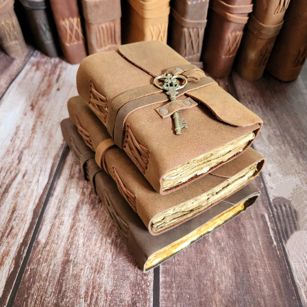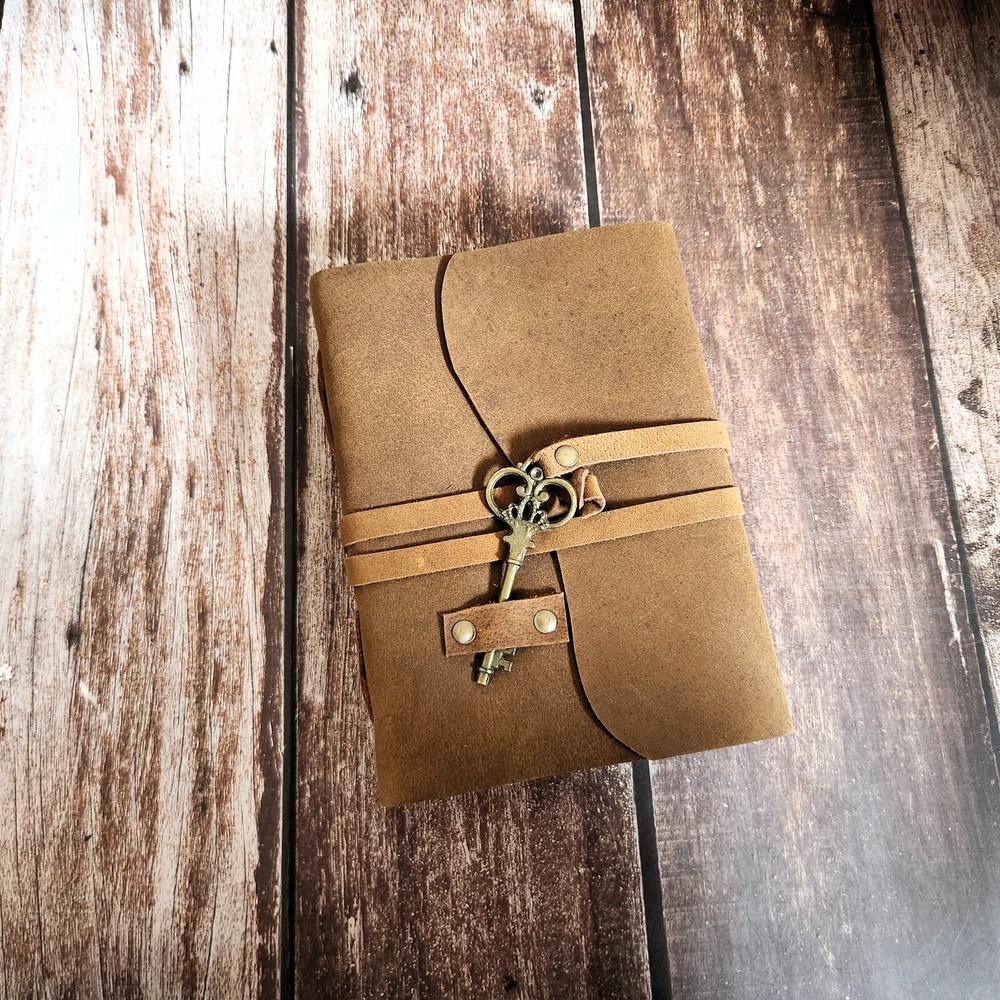 Brown Journal Leather Journal with Leather Lace & Key Dream Journal, Writing Journal, Wedding gift, Notebook, sketchbook, Personalized Gift. 1. This exquisite brown leather journal is the perfect accessory for anyone looking to capture their dreams, thoughts, or sketches in style. The journal features a beautiful leather lace closure and a vintage-style key on top, adding a touch of elegance and charm to its design. 2. With 200 deckle pages, this journal provides ample space for writing, drawing, or even scrapbooking. It is a versatile piece that can be used as a dream journal, writing journal, wedding gift, notebook, or sketchbook, making it a thoughtful and personalized gift for any occasion. 3. Crafted from high-quality leather, this journal is not only durable but also ages beautifully over time, developing a unique patina that adds to its character. Whether you're a writer, artist, or someone who simply loves to jot down their thoughts, this leather journal with a key is sure to inspire creativity and become a cherished keepsake for years to come.
