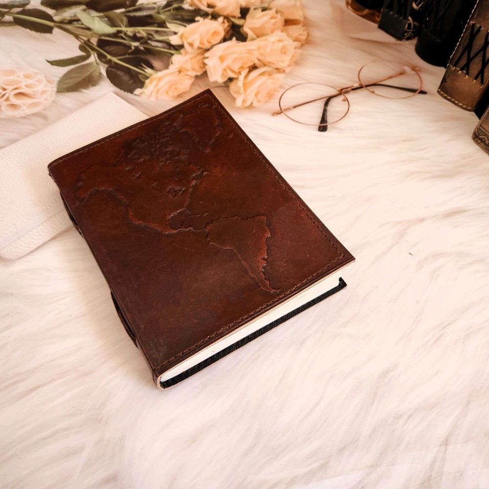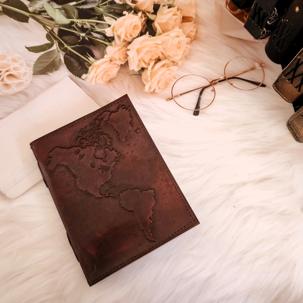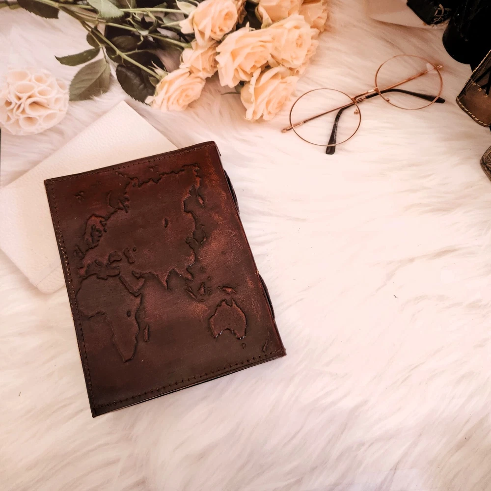 Introducing our Brown World Map Embossed Leather Journal, Perfect for all your writing & sketching needs. This 200 Page Dream Journal, Notebook & Leather sketchbook is also an ideal Travel Dairy, featuring a world map Design on the cover. Measuring 7x5 Inch, this high-quality Leather Dairy is the perfect companion for your adventures & creative endeavors.