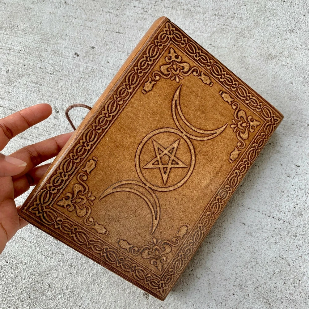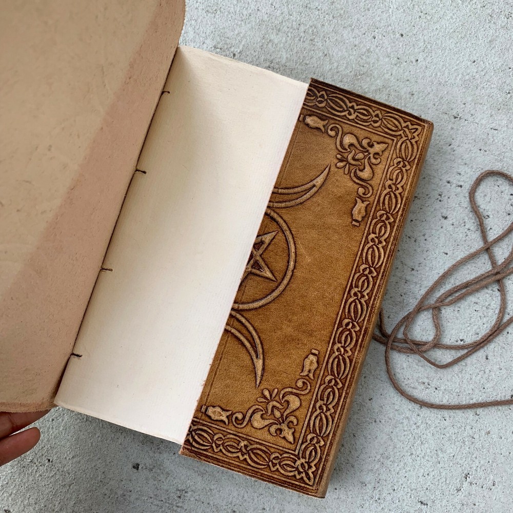 Absolutely love this handmade leather journal! The celestial sun and moon embossing is stunning, and the eco-friendly cotton paper feels amazing to write on. Perfect for notes, sketches, or rituals—each one has unique charm since they're crafted by hand. The size is ideal for carrying around, and it makes a beautiful, thoughtful gift. Highly recommend for anyone who appreciates quality and craftsmanship!