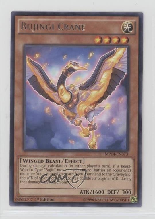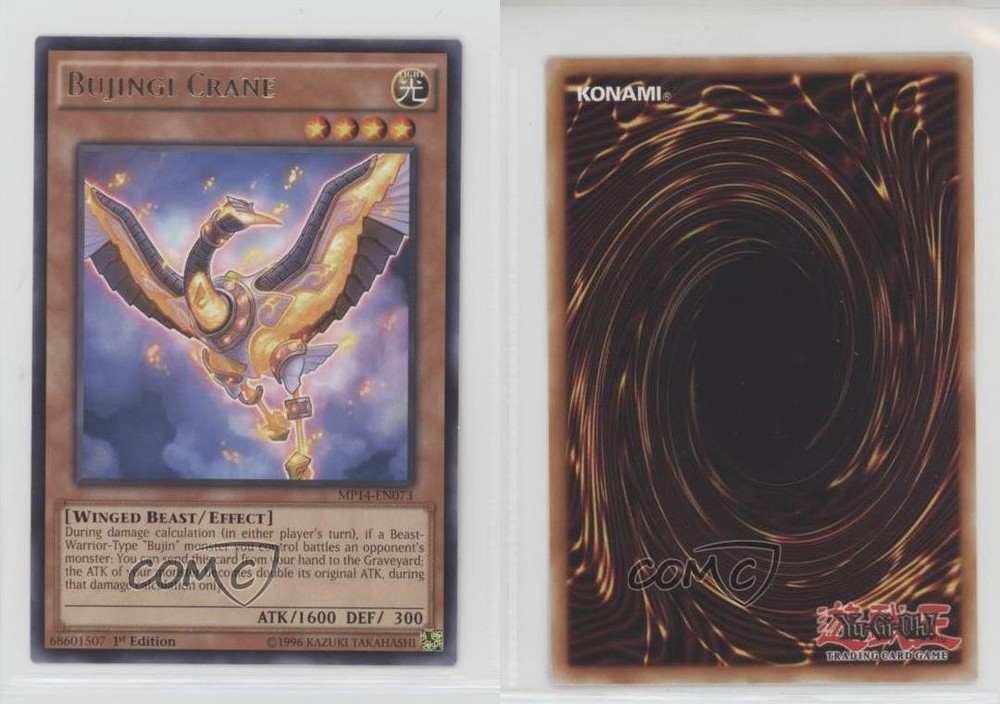 2014 Yu-Gi-Oh! Mega-Tins Mega Pack - [Base] - 1st Edition #MP14-EN073 Bujingi Crane COMC Item: 172308217 - YuGiOh Card - Featuring Bujingi Crane Search for more: 2014 Yu-Gi-Oh! Mega-Tins Mega Pack Search for more: 2014 Yu-Gi-Oh! Mega-Tins Mega Pack - [Base] - 1st Edition View all of our Listings Auctions Buy It Now About Us Located in the beautiful Pacific Northwest, COMC (Check Out My Cards) is the world's largest consignment service for trading card singles. More than 10,000 people have used our consignment service to list over 50 million trading cards. Find out how we can help you consign your items on eBay by contacting us through eBay messaging. COMC -- "The Safe & Easy Way to Buy & Sell" Raw Condition for Modern Cards Unless otherwise noted, raw modern cards are listed in Near Mint-Mint condition or better. A NM-MT card appears to be Mint at first glance, but upon closer inspection, may exhibit some of the following: minor print defects (e.g. roller marks, print line, dimple), minor scratches, slight edge wear, and slight corner wear. Centering is clearly visible in the images provided and does not factor into our condition assessment. Raw Condition for Vintage Cards Unless otherwise noted, raw vintage cards are listed in Excellent condition or better. An EX card may exhibit some of the following: minor rounding of corners, surface wear, print defects, light scratches, and slight edge wear/chipping. Centering is clearly visible in the images provided and does not factor into our condition assessment. Domestic Shipping Combined shipping for multiple items is available. To receive combined shipping, please ensure all desired items are in your eBay shopping cart before proceeding to checkout. eBay limits orders to 40 items per order. We automatically combine multiple orders placed on the same day. If you place multiple orders on the same day, please contact us to request a refund of applicable shipping costs. Signature confirmation may be required on invoices over $400. All cards are protected and shipped securely. International Shipping COMC offers eBay's International Shipping (EIS) for international orders under $2,500* (see country exceptions below). All duties and import fees are paid at checkout; in the rare event that there are additional import fees upon delivery, these are borne by the buyer. EIS packages route through a shipping hub in Erlanger, KY before shipping to their final destination. Please note that EIS does not allow for combined shipments. The shipping rates are determined by eBay and cannot be adjusted. *Maximum sale price exceptions: Colombia, Kuwait ($2,000); Taiwan ($1,539); Chile, Costa Rica, Guatemala, Honduras, Trinidad and Tobago ($1,000); Antigua and Barbuda, Aruba, Belize, Dominica, Grenada, Philippines, Saint Kitts and Nevis, Saint Lucia, Montserrat, Turks and Caicos Islands ($500); Dominican Republic, El Salvador ($200). Please request a shipping quote through eBay messaging for orders that exceed the maximum sale price supported by eBay's International Shipping. You will be responsible for all duties and import fees for international orders shipped outside the EIS. All cards are protected and shipped securely. Payment COMC does not accept offers on our cards through our eBay storefront. COMC utilizes eBay’s managed payments system. If you are experiencing difficulties making a payment, please contact eBay for assistance. Return Policy Returns are only accepted on the rare occasion the item is not as described. If you are making a return, please initiate the return process through eBay so a mailing label can be provided for you. Prior to listing, our expert team carefully assessed this item to represent it accurately. Please review the description and high-definition images prior to purchasing to ensure this item meets your satisfaction. We welcome you to contact us if you have further questions about this item. Trust and Integrity COMC carefully assesses each item consigned to us to prevent fraudulent items from entering the marketplace. If you believe an item offered on COMC may be fraudulent, please contact us with details so we can investigate the issue. Items we determine are outside our supported items policy may be removed. Last Modified: 6/3/2025 5:03:16 AM PDT
