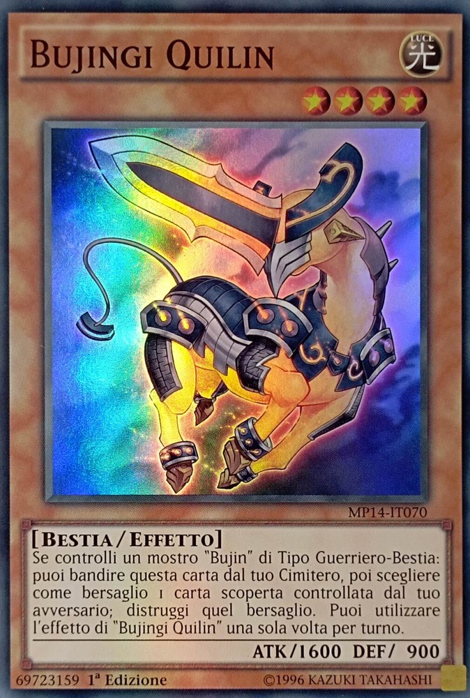 Bujingi Quilin - Super Rara - 2014 Mega-Tin Mega-Pack - MP14-IT070 - Ita Nuovo Bujingi Quilin - Super Rara - 2014 Mega-Tin Mega-Pack - MP14-IT070 - Ita Nuovo Se controlli un mostro “Bujin” di Tipo Guerriero-Bestia: puoi bandire questa carta dal tuo Cimitero, poi scegliere come bersaglio 1 carta scoperta controllata dal tuo avversario; distruggi quel bersaglio. Puoi utilizzare l’effetto di “Bujingi Quilin” una sola volta per turno. Shipping Shipping cost: Italy Posta 1 -> 2,95 Corriere Espresso -> 5,99 Outside Italy Priority - 8,00 Delivery time: La Spedizione Viene Effettuata entro i 5 giorni successivi al pagamento dell'ordine. Payment Per qualsiasi info contattateci Service Per qualsiasi info contattateci