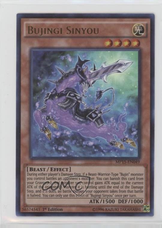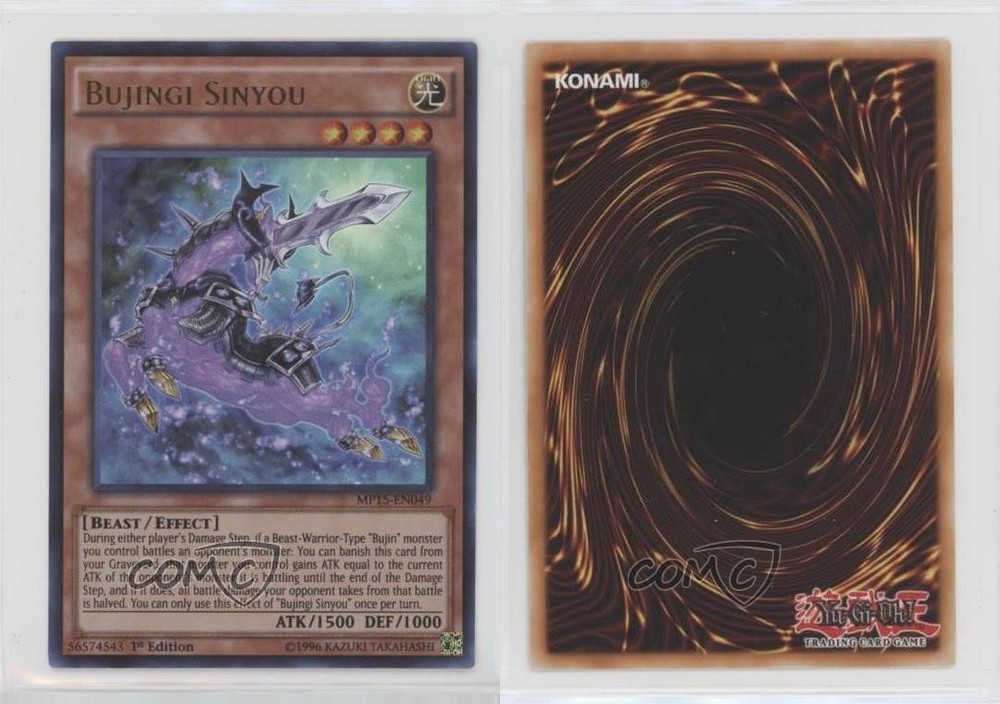 This card is a fantastic addition to any Bujin deck! The Ultra Rare foil makes it stand out, and the 1st Edition stamp adds collector value. The condition is flawless, and it arrived quickly. Perfect for both competitive play and collecting—highly recommend grabbing one while you can! COMC always delivers quality cards, and this was no exception. Super happy with my purchase!