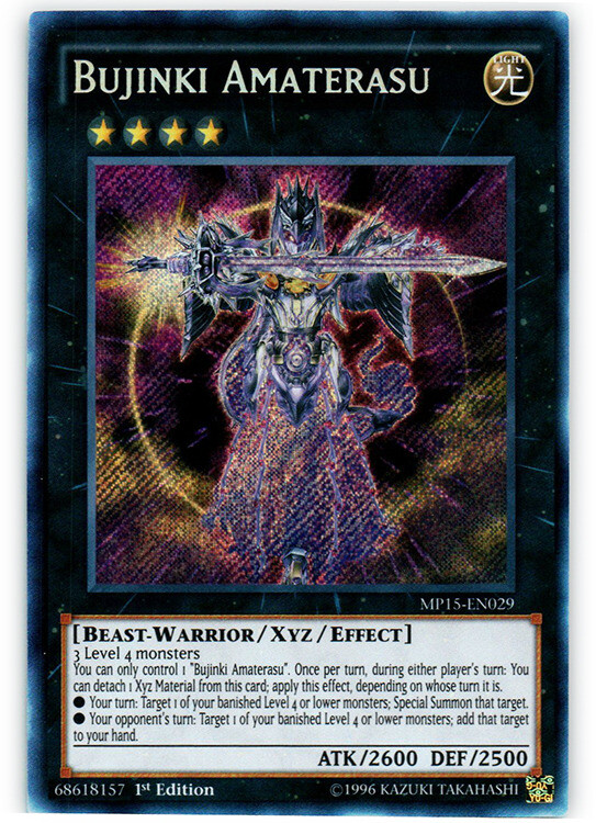 Please, carefully read the following: Image shown is a stock photo and does not reflect the actual card you will be receiving. Please refer to the condition guide below, the title and item description for what you will be receiving. Please also be aware that due to plastic shortages, orders may not always come in a plastic toploader but will always be protected as much as possible to prevent damage. You will receive 1x Bujinki Amaterasu - MP15-EN029 - Secret Rare - 1st Edition - Condition: Lightly Played Please refer to the Title and Item Description above for the item being purchased. Delivery delays: Deliveries may not always fall within the estimated delivery dates when shipping outside of Canada and USA. Many factors may contribute to delays in delivering the package such as weather and customs. Please note that delivery to international locations may take up to 8 weeks to arrive . We always ship out orders within 1 business day and after dropping off with the post office, delivery times are out of our control. Feedback: We will always leave positive feedback for you and we ask if you can do the same for us. If there is any reason why the transaction was not up to your expectations, please message us before leaving feedback so we can address the issue. Combined shipping: To receive a combined shipping quote, please make sure that you commit to purchasing on ebay.ca . This allows us to send you a combined shipping invoice before payment. Shipping within the USA (6-10 Business days): FREE! Shipping within Canada (3-8 Business days): FREE! Shipping and handling delay: We aim to ship all orders within 1 business day. We do not ship on weekends and holidays. Condition Guide: We do not sell any cards that are in MINT condition, the best condition that we offer is near mint. Near Mint (NM) - Cards in Near Mint condition show minimal to no wear from shuffling, play or handling and can have a nearly unmarked surface, crisp corners and unblemished edges outside of a few minimal flaws. A Near Mint card may have a tiny edge nick or a tiny scratch or two, but overall look nearly unplayed with no major defects or flaws. Lightly Played (LP) - Cards in Lightly Played condition may have minor border or corner wear or even just slight scuffs or scratches. There are no major defects such as water damage, bends or issues with the structural integrity of the card. Noticeable imperfections are okay, but none should be too severe or at too high a volume. Moderately Played (MP) - Cards in Moderately Played condition exhibit condition issues visible at a casual glance. Cards in Moderately Played condition can have border wear, corner wear, scratching or scuffing, creases or whitening, minor dirt buildup or any combination of mild examples of these marks. A Moderately Played card may have some form of a more major marking, such as spot water damage or creasing that doesnʼt affect card integrity, but not in combination with other issues such as scratches, scuffs or border/edge wear and not impacting a large area of the card. Heavily Played (HP) - Cards in Heavily Played condition show a severe amount of wear. Heavily Played condition can include cards that have major creasing, major whitening, major border wear or any combination of those flaws. (These flaws cannot prevent the card from being tournament playable when sleeved.) Damaged - Cards in Damaged condition can exhibit a tear, bend or crease that may make the card illegal for tournament play, even in a sleeve. Cards in Damaged condition may have extreme border wear, extreme corner wear, heavy scratching or scuffing, folds, creases or tears or other damages that impacts the structural integrity of the card.
