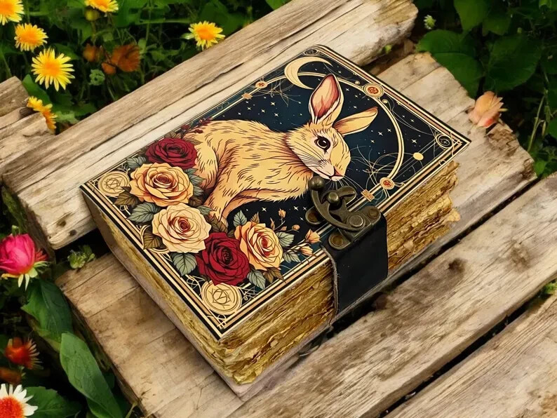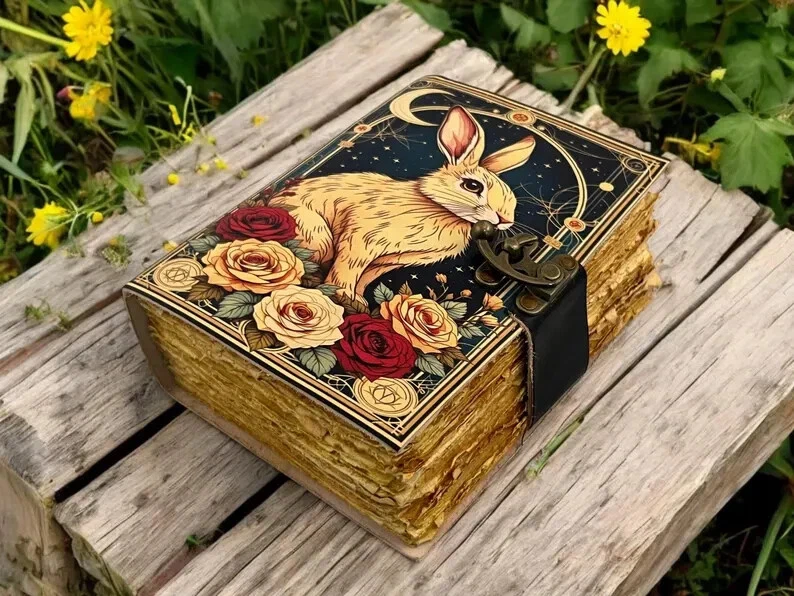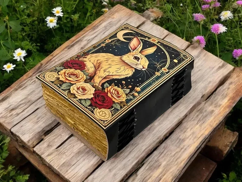 Bunny rabbit Grimoire Leather Journal Notebook Journal for women - Fat journal handmade Deckle Paper Notebook Journal for gift •Fox Leather Journal Rustic vintage leather • C-Lock brass • genuine buffalo leather • vintage deckle edge old paper. • 200 Sheet (400 pages both side) • Available all Size 7x5'' 8x6'' 10x7'' 13x10 '' Fox Leather Journal Rustic Notebook for Writing & Sketching Gift for her, Handcrafted Diary, Book of Shadows, Vintage book, Blank spell book Grimoire journal - Blank spell witch, book of shadows, Gifts For Men and Women ● Antique Paper - Vintage Journal is made of unique vintage paper which looks like it was pulled from history. You will love the old looking handmade cotton paper (200 pages) which is unique to our vintage journals. ● VINTAGE LOCK AND STURDY BINDING - The vintage lock will keep all your valuable writing locked inside.Sturdy hand stitched binding to make sure that no paper comes out loose from your vintage notebook. ● Sketchbook is great for keeping by the bedside to jot down dreams, or for use as a diary or journal. ● It is a truly unique and wonderful gift for a friend, the men, women, and wiccans in your life! or to treat yourself to as a special keepsake ● our journals are influenced by symbolism that is derived from the Wicca/Pagan community, creating a personalized space where your inner creative genius can flourish. ● The paper is made from sustainable cotton and jute canvas. The paper is acid-free and pH neutral therefore is a timeless piece of art. ● Use Any Kind Of Pen - Sketch, Doodle, Write on your journal notebook with a Calligraphy Pen Fountain Pen, Brush Pen, Ball Pen, Acrylic Colours, Watercolor and many more. Grimoire The Skull lover Leather Print journal Antique Notebook And Deckle Edge unlined paper. My clients usage: Gifts for him , valentines gift, anniversary or wedding or housewarming gifts, home decor, modern home decor and many more bunny rabbit Grimoire Leather Journal Notebook Journal for women - Fat journal handmade Deckle Paper Notebook Journal for gift •Fox Leather Journal Rustic vintage leather • C-Lock brass • genuine buffalo leather • vintage deckle edge old paper. • 200 Sheet (400 pages both side) • Available all Size 7x5'' 8x6'' 10x7'' 13x10 '' Fox Leather Journal Rustic Notebook for Writing & Sketching Gift for her, Handcrafted Diary, Book of Shadows, Vintage book, Blank spell book Grimoire journal - Blank spell witch, book of shadows, Gifts For Men and Women ● Antique Paper - Vintage Journal is made of unique vintage paper which looks like it was pulled from history. You will love the old looking handmade cotton paper (200 pages) which is unique to our vintage journals. ● VINTAGE LOCK AND STURDY BINDING - The vintage lock will keep all your valuable writing locked inside.Sturdy hand stitched binding to make sure that no paper comes out loose from your vintage notebook. ● Sketchbook is great for keeping by the bedside to jot down dreams, or for use as a diary or journal. ● It is a truly unique and wonderful gift for a friend, the men, women, and wiccans in your life! or to treat yourself to as a special keepsake ● our journals are influenced by symbolism that is derived from the Wicca/Pagan community, creating a personalized space where your inner creative genius can flourish. ● The paper is made from sustainable cotton and jute canvas. The paper is acid-free and pH neutral therefore is a timeless piece of art. ● Use Any Kind Of Pen - Sketch, Doodle, Write on your journal notebook with a Calligraphy Pen Fountain Pen, Brush Pen, Ball Pen, Acrylic Colours, Watercolor and many more. Grimoire The Skull lover Leather Print journal Antique Notebook And Deckle Edge unlined paper. My clients usage: Gifts for him , valentines gift, anniversary or wedding or housewarming gifts, home decor, modern home decor and many more bunny rabbit Grimoire Leather Journal Notebook Journal for women - Fat journal handmade Deckle Paper Notebook Journal for gift •Fox Leather Journal Rustic vintage leather • C-Lock brass • genuine buffalo leather • vintage deckle edge old paper. • 200 Sheet (400 pages both side) • Available all Size 7x5'' 8x6'' 10x7'' 13x10 '' Fox Leather Journal Rustic Notebook for Writing & Sketching Gift for her, Handcrafted Diary, Book of Shadows, Vintage book, Blank spell book Grimoire journal - Blank spell witch, book of shadows, Gifts For Men and Women ● Antique Paper - Vintage Journal is made of unique vintage paper which looks like it was pulled from history. You will love the old looking handmade cotton paper (200 pages) which is unique to our vintage journals. ● VINTAGE LOCK AND STURDY BINDING - The vintage lock will keep all your valuable writing locked inside.Sturdy hand stitched binding to make sure that no paper comes out loose from your vintage notebook. ● Sketchbook is great for keeping by the bedside to jot down dreams, or for use as a diary or journal. ● It is a truly unique and wonderful gift for a friend, the men, women, and wiccans in your life! or to treat yourself to as a special keepsake ● our journals are influenced by symbolism that is derived from the Wicca/Pagan community, creating a personalized space where your inner creative genius can flourish. ● The paper is made from sustainable cotton and jute canvas. The paper is acid-free and pH neutral therefore is a timeless piece of art. ● Use Any Kind Of Pen - Sketch, Doodle, Write on your journal notebook with a Calligraphy Pen Fountain Pen, Brush Pen, Ball Pen, Acrylic Colours, Watercolor and many more. Grimoire The Skull lover Leather Print journal Antique Notebook And Deckle Edge unlined paper. My clients usage: Gifts for him , valentines gift, anniversary or wedding or housewarming gifts, home decor, modern home decor and many more bunny rabbit Grimoire Leather Journal Notebook Journal for women - Fat journal handmade Deckle Paper Notebook Journal for gift •Fox Leather