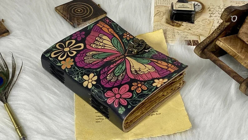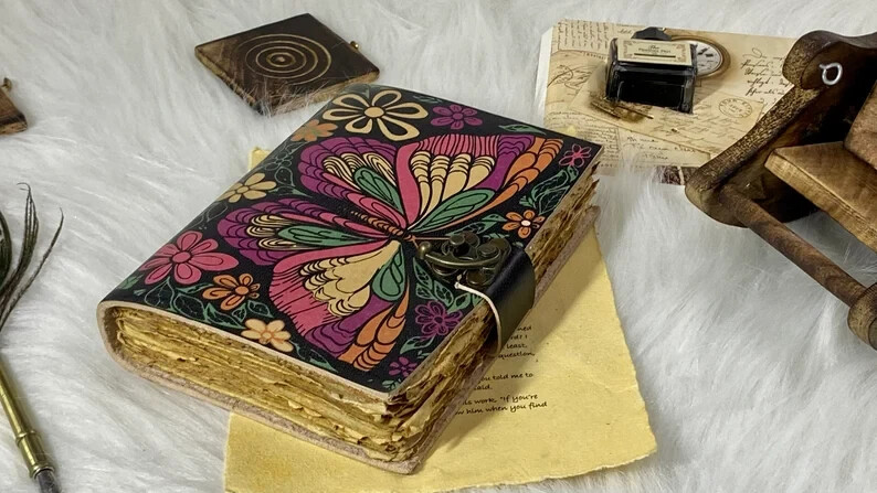 Welcome to our mystical world of Witch Leather Journals, where enchantment meets craftsmanship! Immerse yourself in the art of spellbinding with our exquisite 7x5 inch Witch Leather Journal, thoughtfully designed for both seasoned witches and journaling enthusiasts. This enchanting journal is a treasure for those who appreciate the tactile beauty of a well-crafted notebook. The 7x5 inch size strikes the perfect balance between portability and ample space for your thoughts, spells, and magical musings. It's a size that fits snugly in your hand, ready to accompany you on your mystical adventures wherever they may lead. But what truly sets our Witch Leather Journal apart is its antique deckle edge paper. Each page is a work of art with a natural, irregular edge that evokes the feeling of ancient tomes filled with arcane knowledge. Crafted with the utmost care, our acid-free, eco-friendly paper invites your favorite pens, quills, or inks to glide effortlessly, capturing your most profound thoughts and mystical incantations. Whether you're a seasoned practitioner, a burgeoning witch, or simply a lover of unique craftsmanship, this journal is the perfect companion for documenting your journey through the realms of magic. Its vintage charm and timeless elegance make it a fantastic gift for friends and loved ones who share a passion for journaling or the mystical arts. Explore the pages of this Witch Leather Journal and let your creativity and intentions flow freely. May your spells be potent, your thoughts profound, and your magical journey filled with wonder and enchantment. Welcome to the realm of our 7x5 Witch Leather Journal with antique deckle edge paper – where every page whispers secrets of the past and possibilities of the future. Embrace the magic within your words!