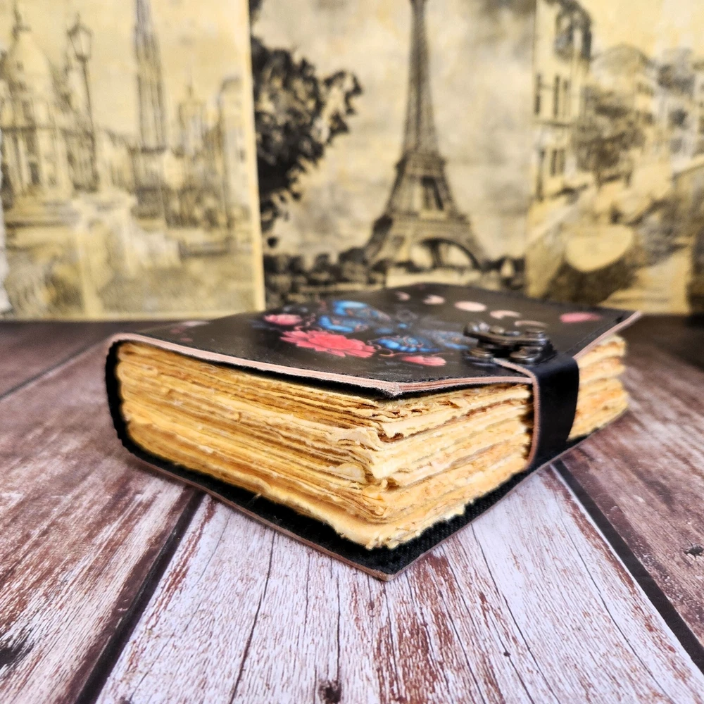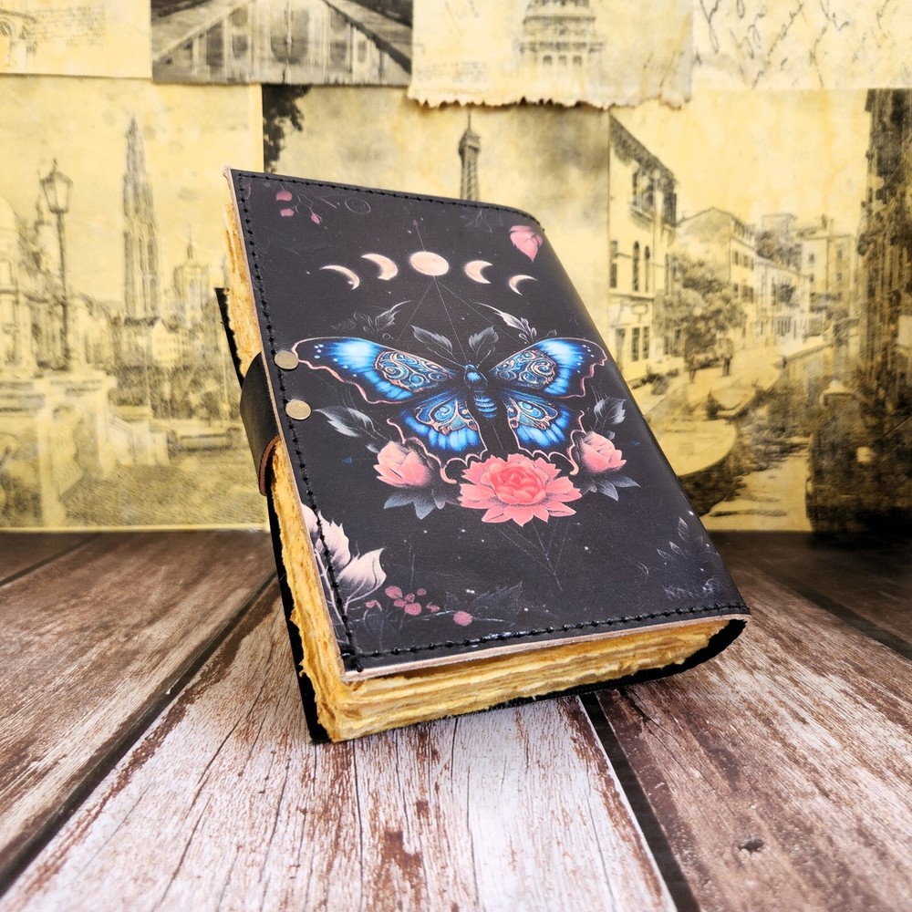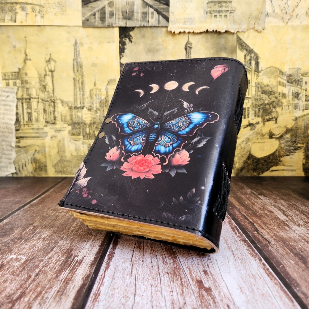 Immerse yourself in the whimsical beauty of our Butterfly Print Leather Journal, a perfect blend of elegance and charm. Handcrafted with care and adorned with delicate butterfly prints, this personalized journal is an ideal gift for her, whether for weddings, birthdays, or any special occasion. Crafted to perfection, each leather notebook is designed to capture attention and inspire creativity. The 200 deckle paper pages provide a textured surface for sketches, notes, and journal entries, inviting you to explore your imagination. Keep your thoughts and memories safe with the sturdy C-lock closure, ensuring that your writings remain protected. Whether you're planning your wedding or seeking a thoughtful gift for a loved one, our butterfly print journal is sure to leave a lasting impression. Personalize your journal with a name, initials, or special message, adding a personal touch that makes it truly unique. Perfect for him or her, our leather notebook is a cherished keepsake that celebrates the beauty of handmade craftsmanship. Ideal for artists, writers, or anyone who appreciates the finer things in life, our Butterfly Print Leather Journal is a delightful addition to any collection. Order now and let your creativity take flight.