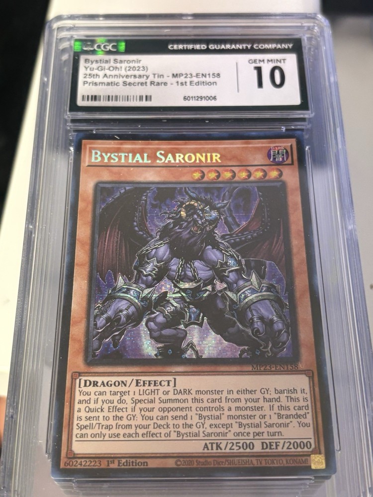 | Card Text | You can target 1 LIGHT or DARK monster in either GY; banish it, and if you do, Special Summon this card from your hand. This is a Quick Effect if your opponent controls a monster. If this card is sent to the GY: You can send 1 "Bystial" monster or 1 "Branded" Spell/Trap from your Deck to the GY, except "Bystial Saronir". You can only use each effect of "Bystial Saronir" once per turn. |